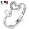 Coreia do Sul nova fábrica de joias atacado elegante anel de prata feminino amor oco coração duplo anel aberto