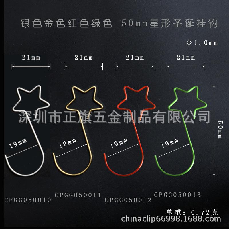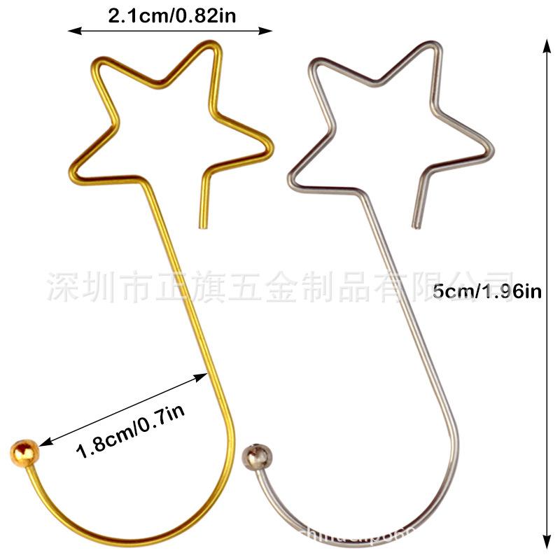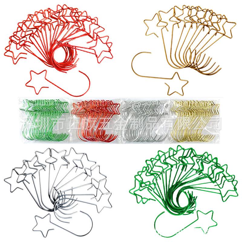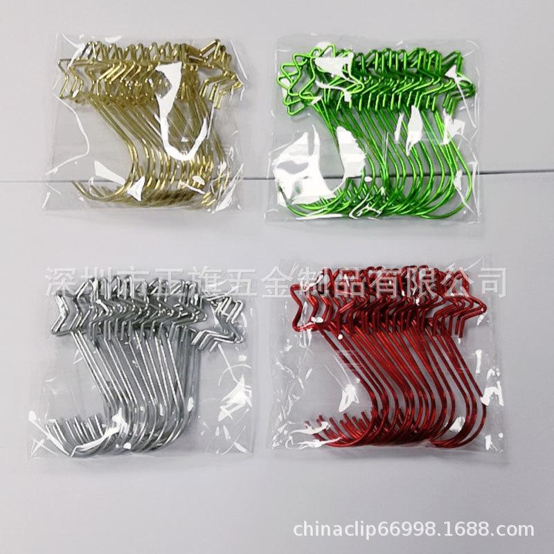 (Nove) ganchos de Natal de 50mm em forma de estrela, (dourado, prateado, verde brilhante, vermelho brilhante), cor única 20 por pacote: