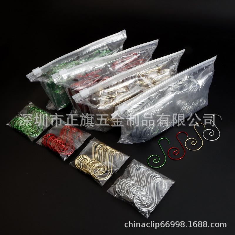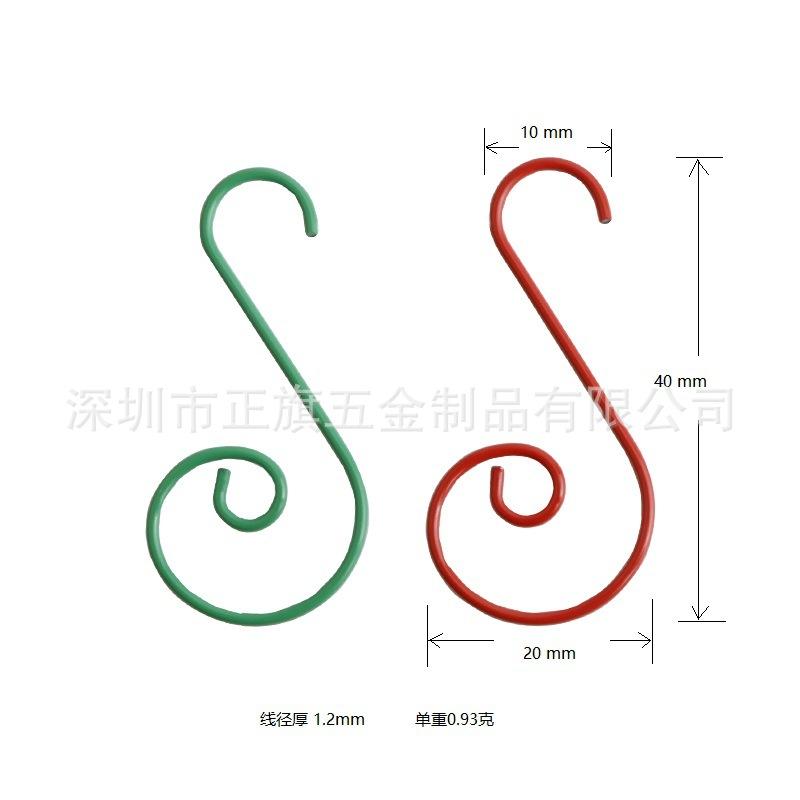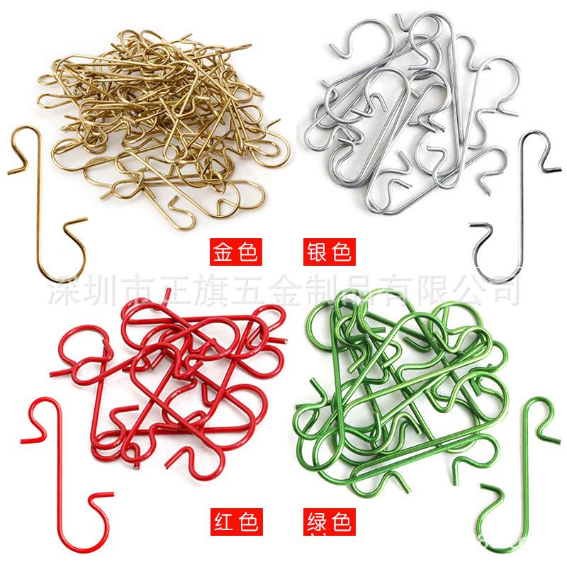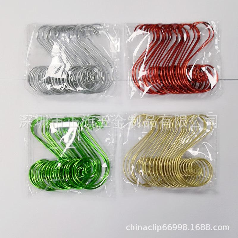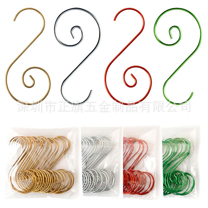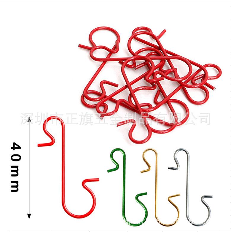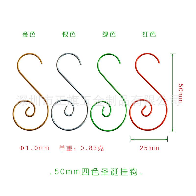 (Vinte) ganchos S de decoração de bola colorida de 50mm (dourado, prateado, verde brilhante, vermelho brilhante), cor única 100 peças por pacote: