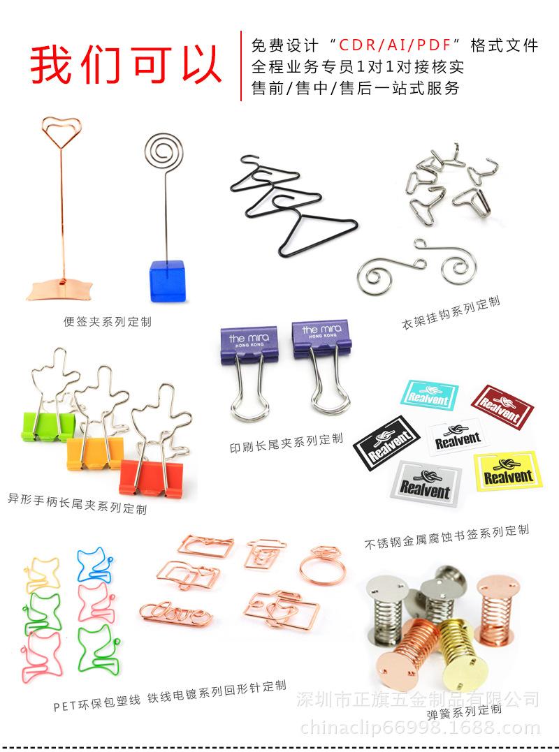 Os produtos fabricados pela empresa incluem principalmente: ganchos de decoração de Natal, ganchos de teto, clipes de papel, clipes de fichário, clipes de papel, alfinetes de segurança, marcadores de livro, mini cabides para bonecas Barbie, clipes de papel, porta-cartões de visita de arame de aço, prendedores de memorando, porta-cartões para mesa de casamento, porta-lugares, clipes para menu, alfinetes para armazenamento de notas fiscais, porta-cartões, clipes para mensagens, clipes para placas de número, etiquetas para plantas, acessórios DIY feitos à mão, clipes de cauda longa irregulares, clipes de cauda longa com alça de filme, marcadores de livro vazados, ganchos S de metal, ganchos de exposição, ganchos de aço inoxidável, ganchos para cortina, mini cabides pequenos, cabides de carta para casamento, molas de balanço para brinquedos, porta-fotos, cestos de frutas de ferro forjado, estantes criativas, porta-canetas de ferro forjado, clipes para livros escolares de estudantes, clipes de cabeça dupla moldados, conjuntos de presentes de papelaria... ...