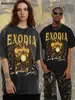 2025 Animação Clássica Transfronteiriça Verão Lavado Estilo Americano Retrô Manga Curta Masculina Impressa por Injeção Direta High Street Masculina Camiseta de Algodão Puro