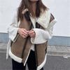 Jaqueta Colete Feminino Outono e Inverno Transfronteiriço de Pele de Uma Peça Lã de Cordeiro Retrô Solto Zíper Camurça