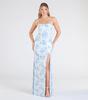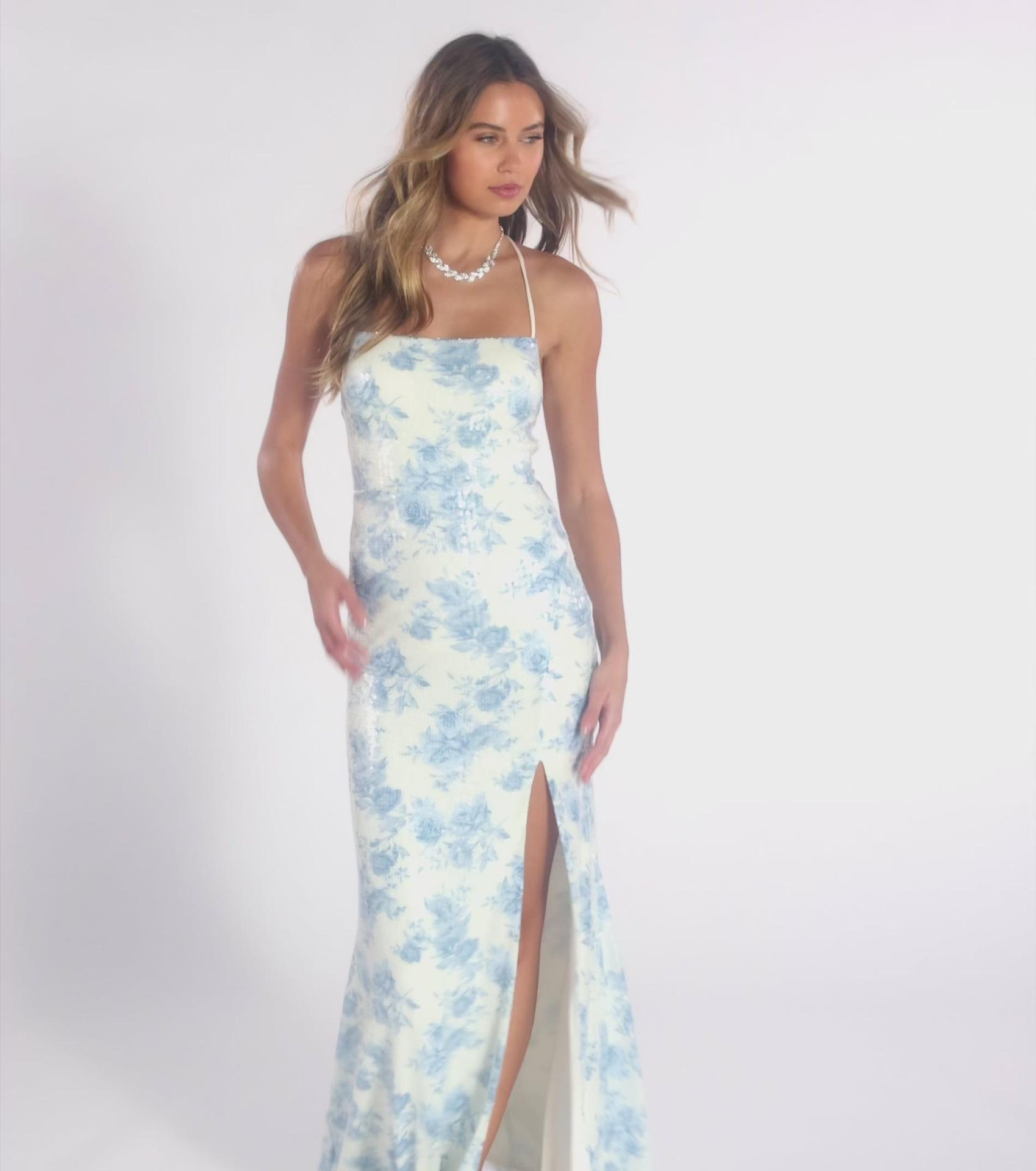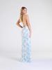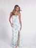 Vestido Popular Transfronteiriço Europeu e Americano Floral de Alças Feminino Novo Saia Midi Ajustado Fenda Vestido de Noite