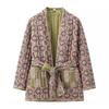 Atacado Transfronteiriço Europeu e Americano 2024 Outono e Inverno Novo Casaco de Manga Comprida com Botões Simples, Estampa, Renda com Amarração na Cintura, Jaqueta de Algodão