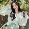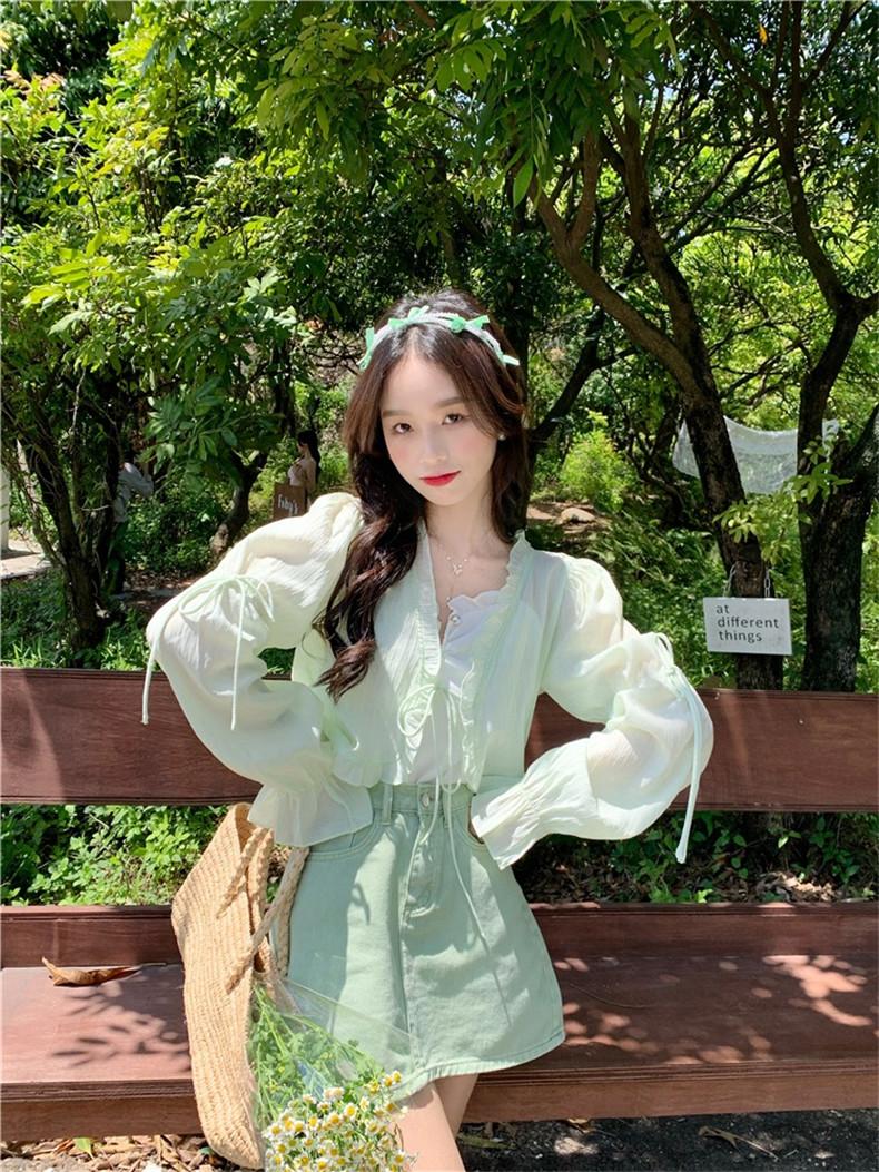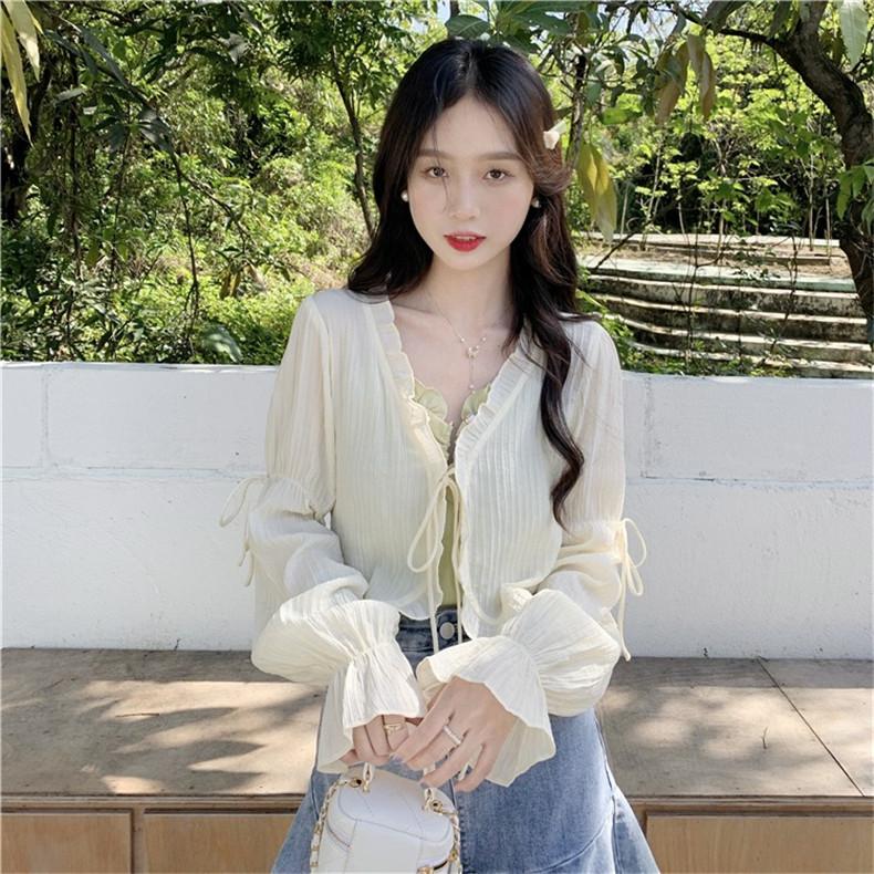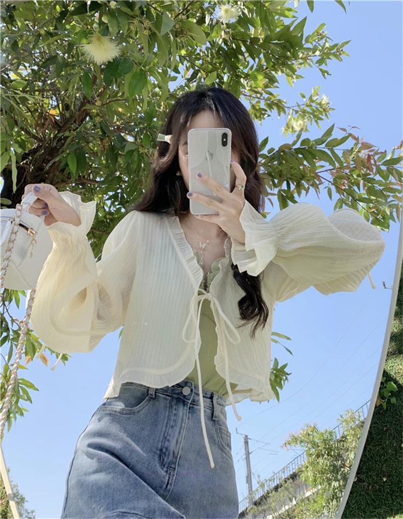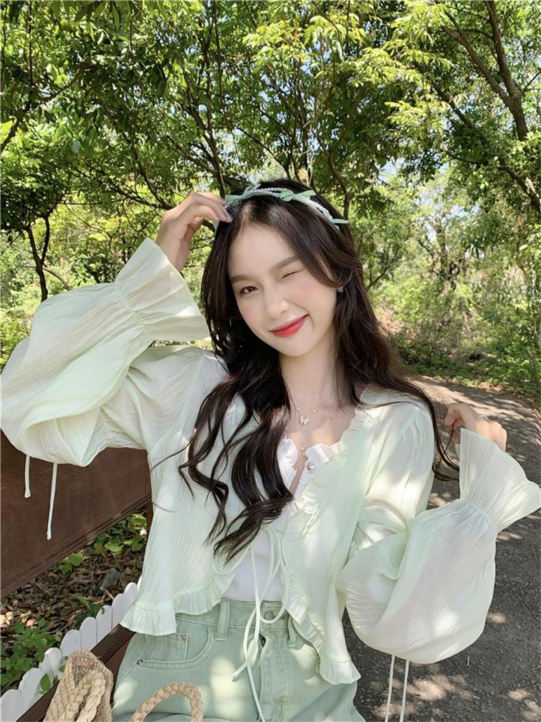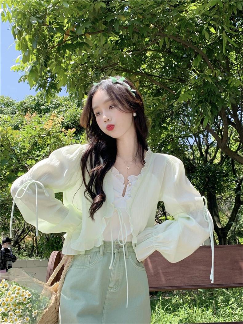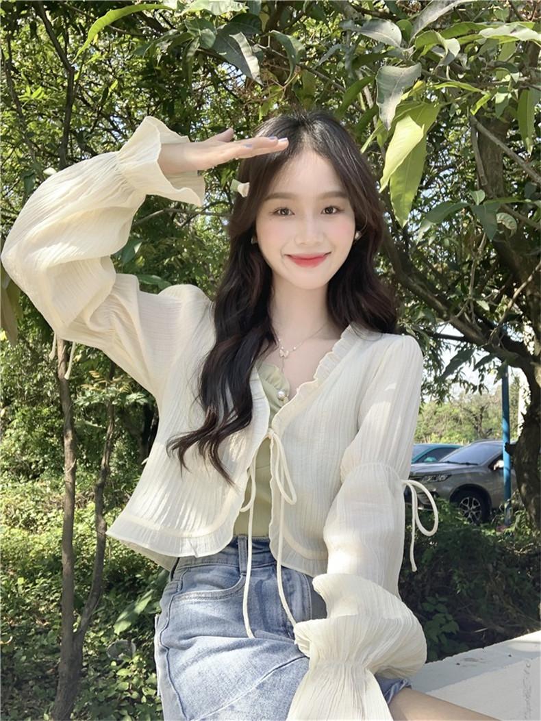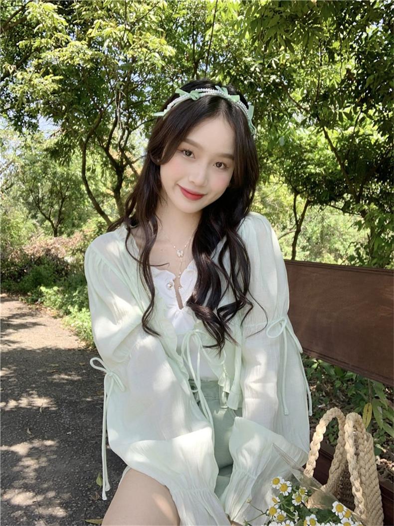 Xale com Saia Suspensório e Blusa Protetora Solar tipo Fada para Mulheres, Cardigã de Chiffon Super Fada de Verão, Jaqueta Fina para Cintura Pequena