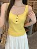 Camisole Puro Desejo com Decote U, Botões e Exposição da Clavícula para Mulheres 2026 Verão Nova Blusa Slim-Fit de Manga Curta Sem Mangas