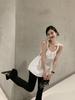 Primavera e Verão Doce Francês Apimentado Coração Vazado Branco Cintura Justa Emagrecimento Roupa Externa Colete Sem Mangas Novo Top Feminino Alça