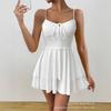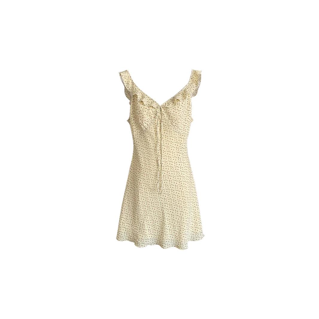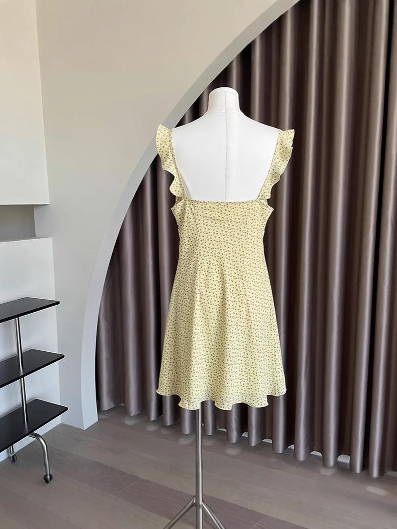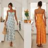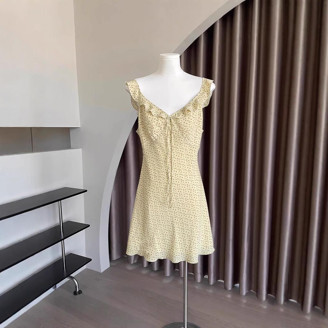 Moda europeia e americana princesa decote V saia fita saia floral estilo feriado Amazônico saia jovem slim sem mangas