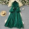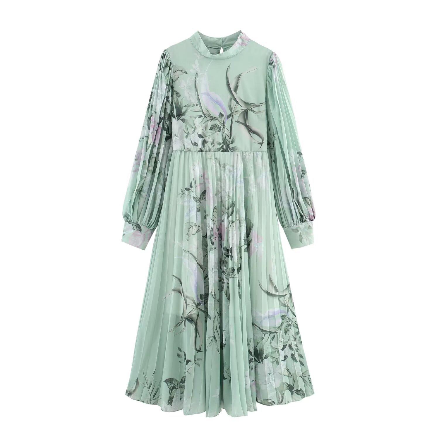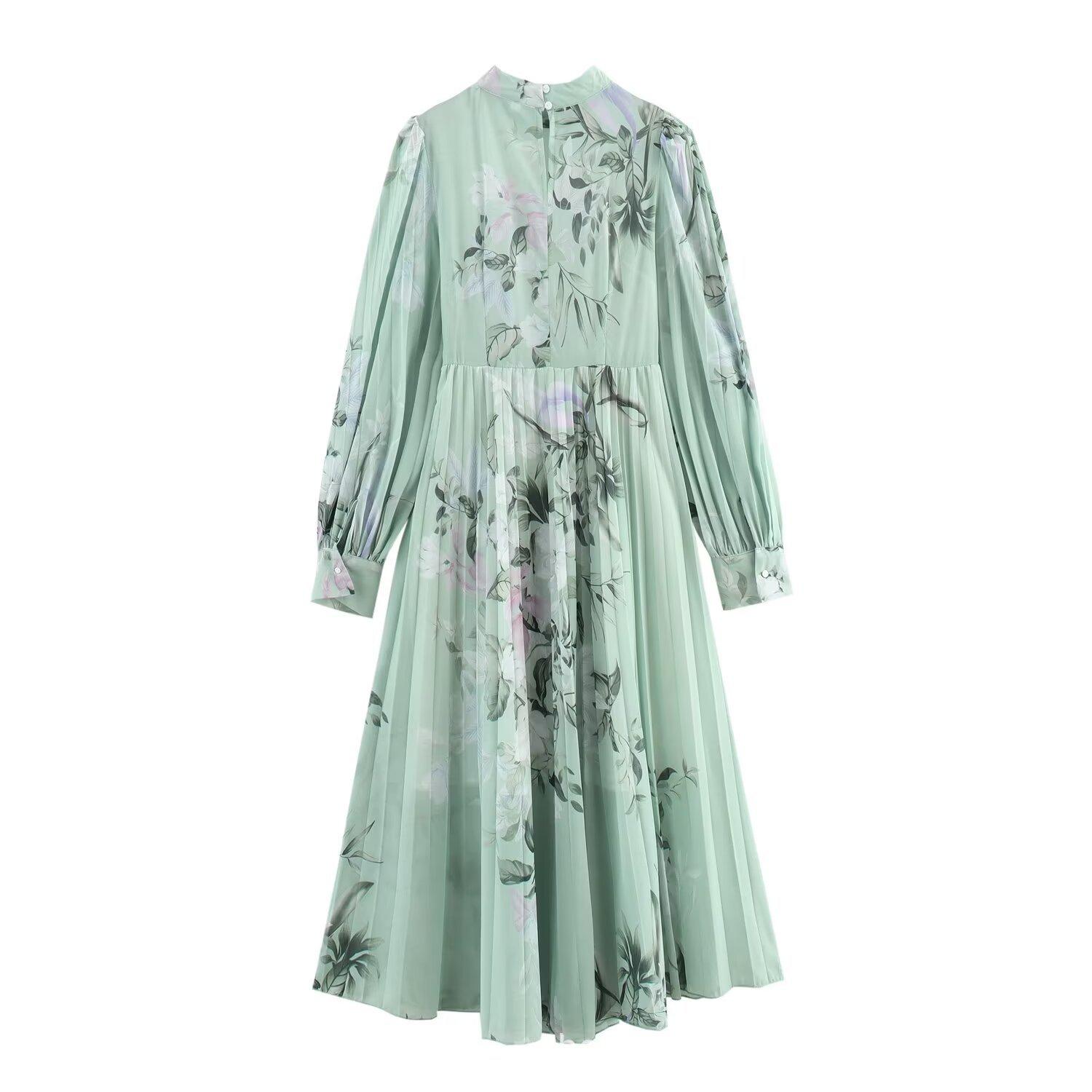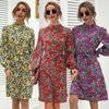 Atacado transfronteiriço 2023 Inverno novo estilo étnico retrô vestido longo feminino cintura plissada vestido estampado