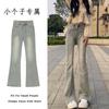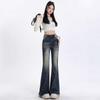 Calças Jeans Flare de Cintura Alta para Mulheres, Outono 2024 Grossas Soltas Elásticas Barra Desfiada Calças Boca de Sino, Calças Longas Modeladoras da Moda