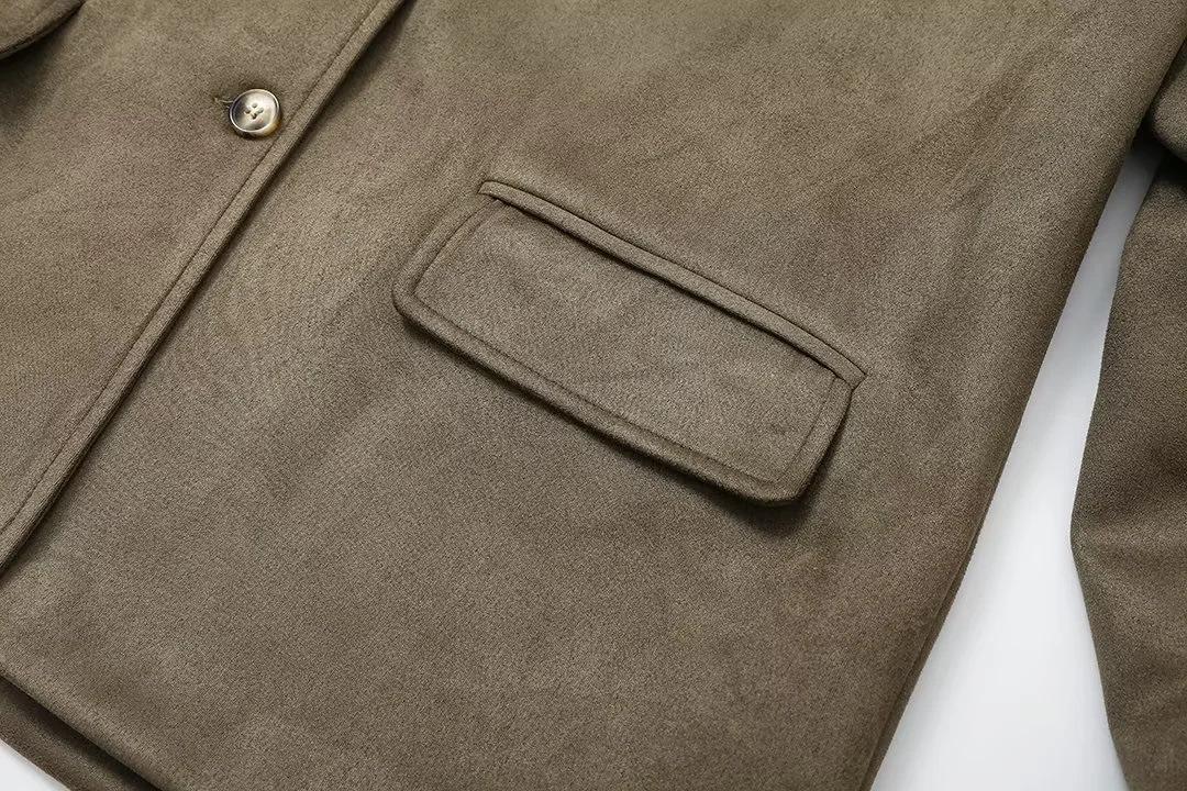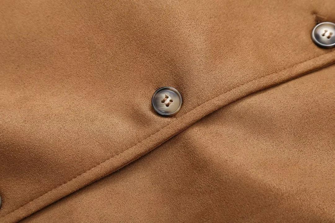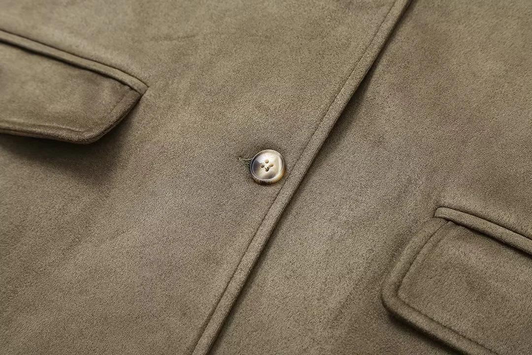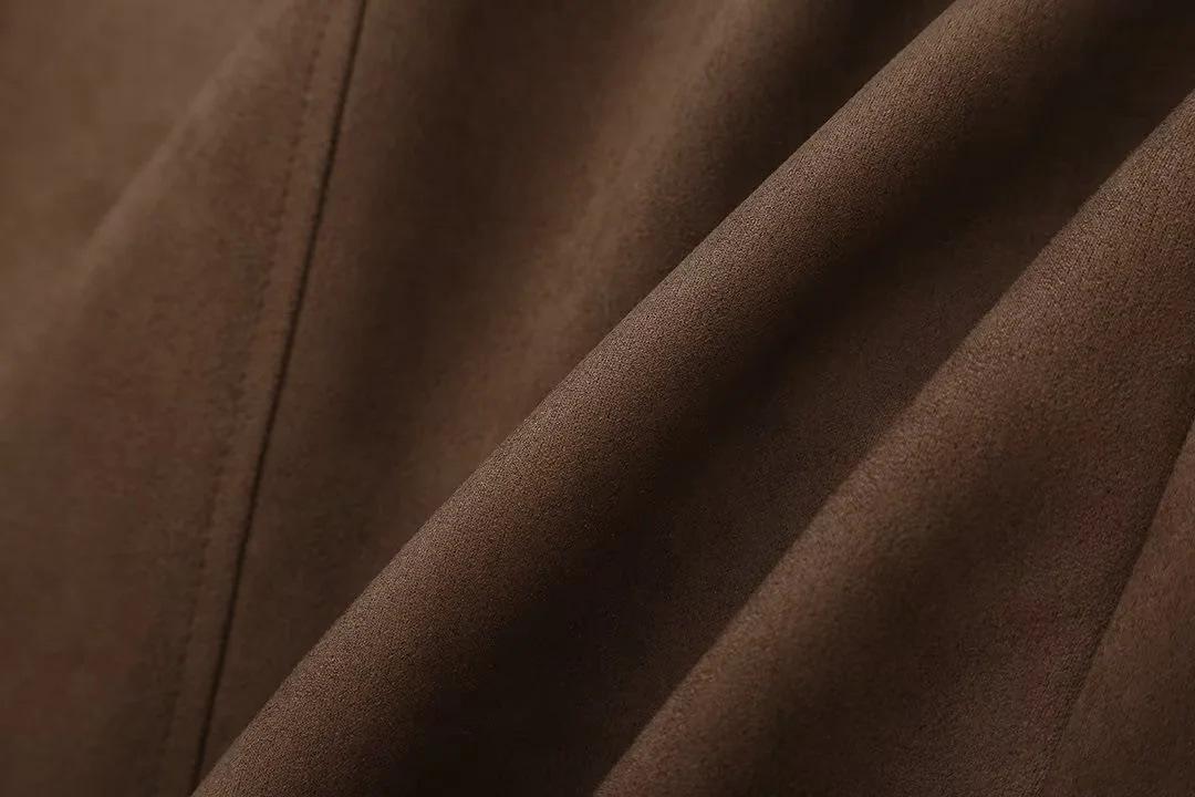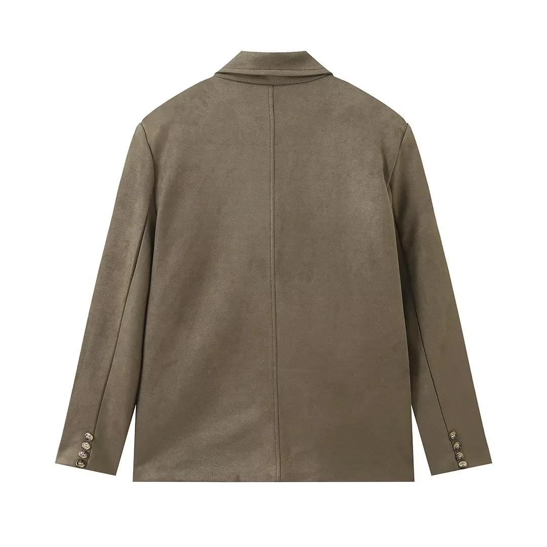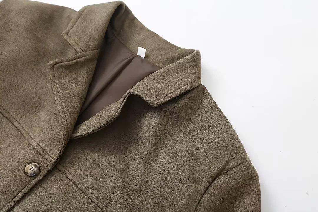 Roupa Feminina Estilo Europeu e Americano Comércio Exterior Transfronteiriço Popular Solto e Confortável Jaqueta Marrom de Camurça com Lapela Americana