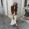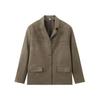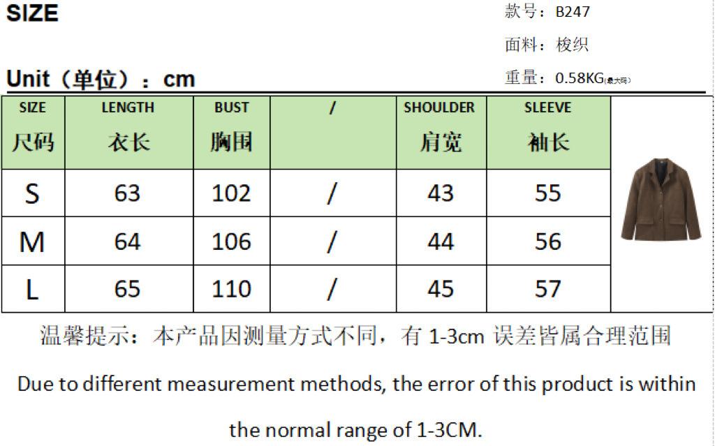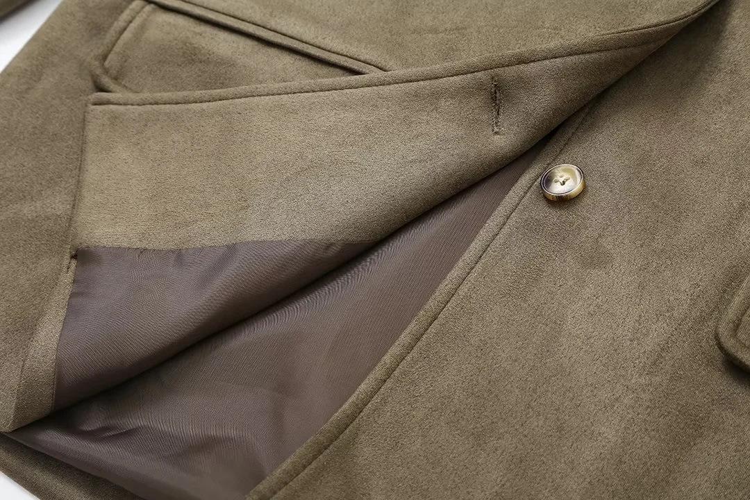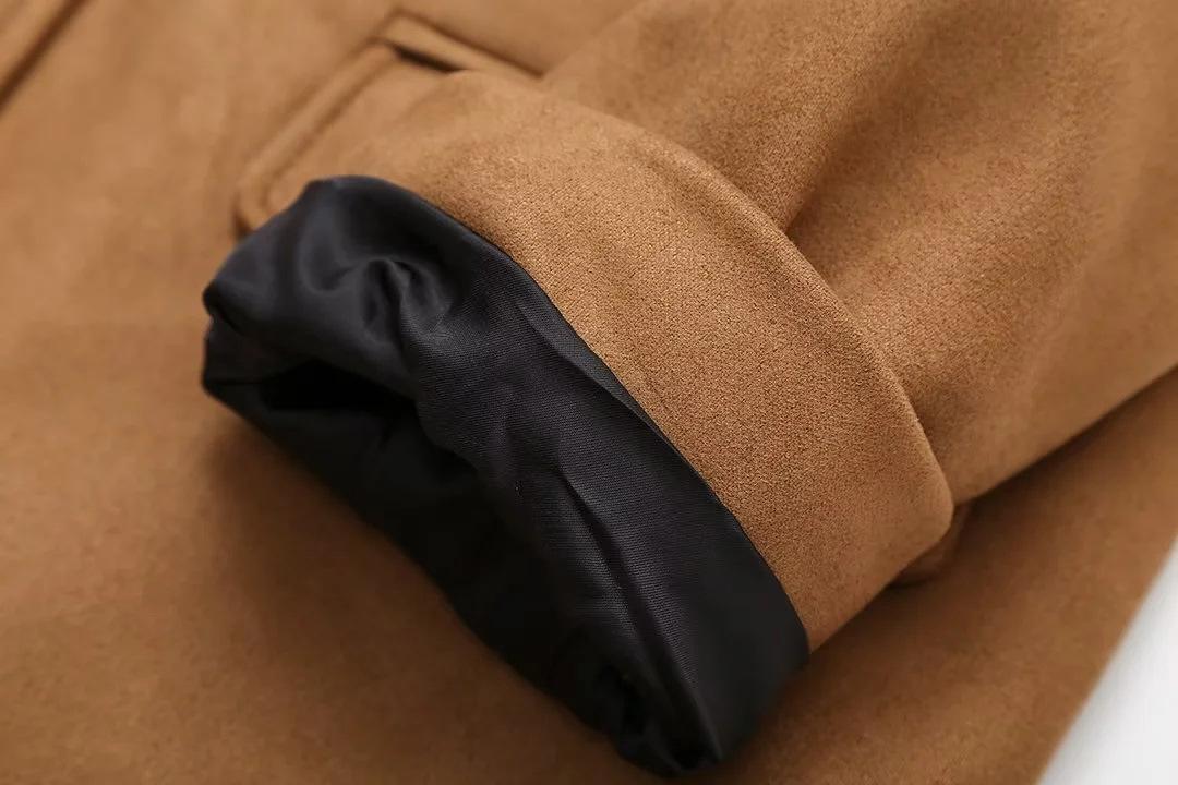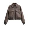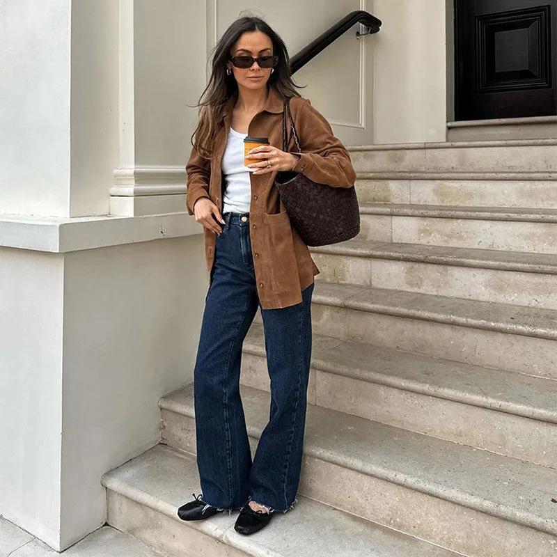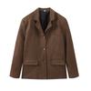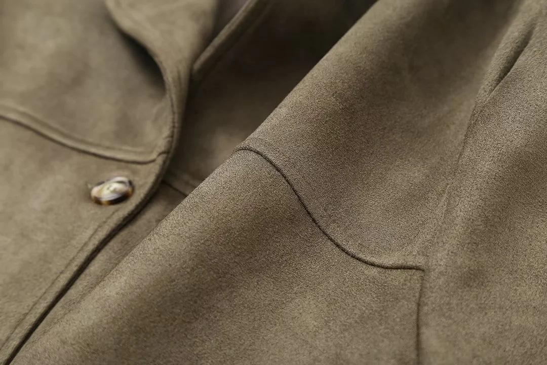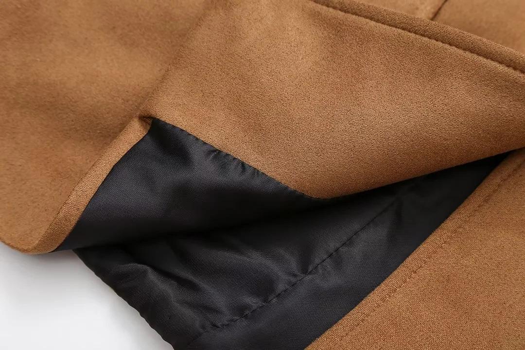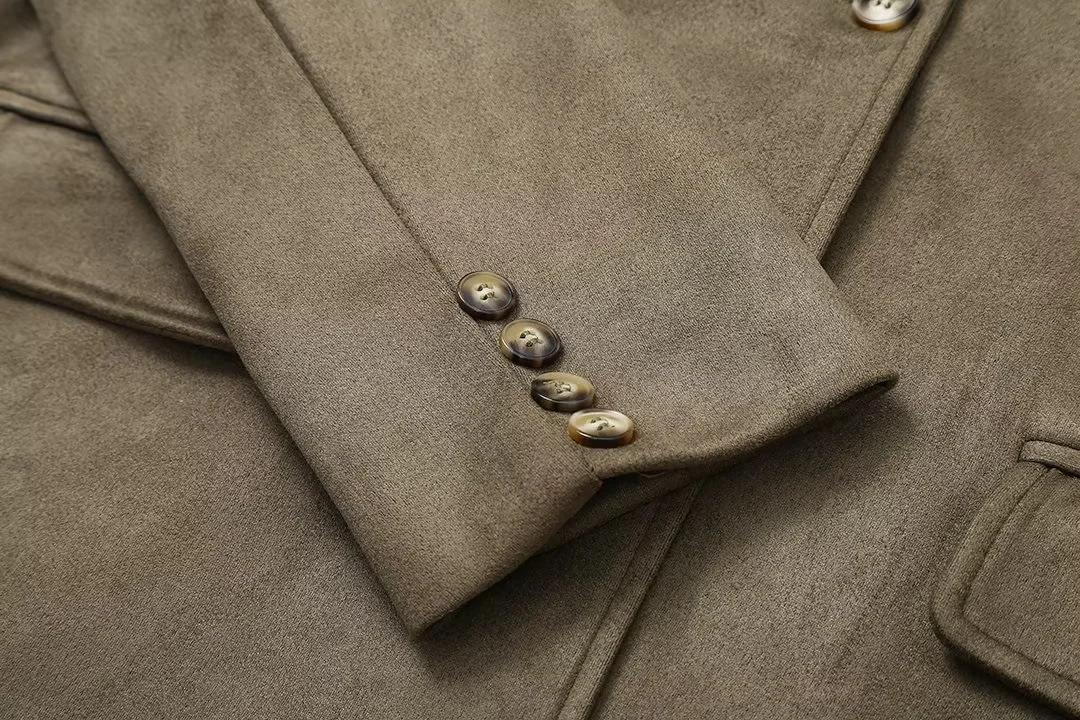 Roupa Feminina Estilo Europeu e Americano Comércio Exterior Transfronteiriço Popular Solto e Confortável Jaqueta Marrom de Camurça com Lapela Americana
