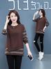 Sudadera súper popular de algodón con falso dos piezas para mujer, nueva para primavera y otoño, con costuras a cuadros en color contrastante, casual, holgada, para usar debajo, para mujer