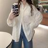 Camisa Feminina Onda de Cor Bolinhas A Tencel Estação Europeia Verão 2025 Nova Moda Europeia Feminina Camisa Boneca Moderna