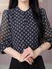 2025 Nova Moda de Verão Camisa Fina Estampada, Fashion e Versátil, Mangas Soltas Três Quartos para Mulheres