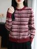 Outono 2025 Novo Cardigã Tricotado Casual Versátil de Manga Longa com Gola Redonda Jacquard Top Feminino