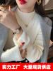 Suéter de Tecido de Veludo Peça Única para Mulheres Outono e Inverno 2025 Novo Estilo Forrado com Lã Espessado Gola Média Popular Tricotado Manga Longa para Usar por Baixo