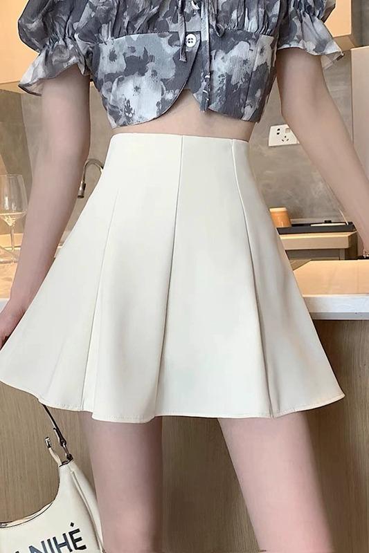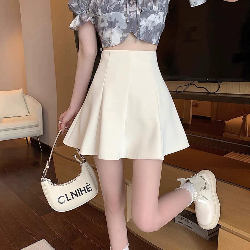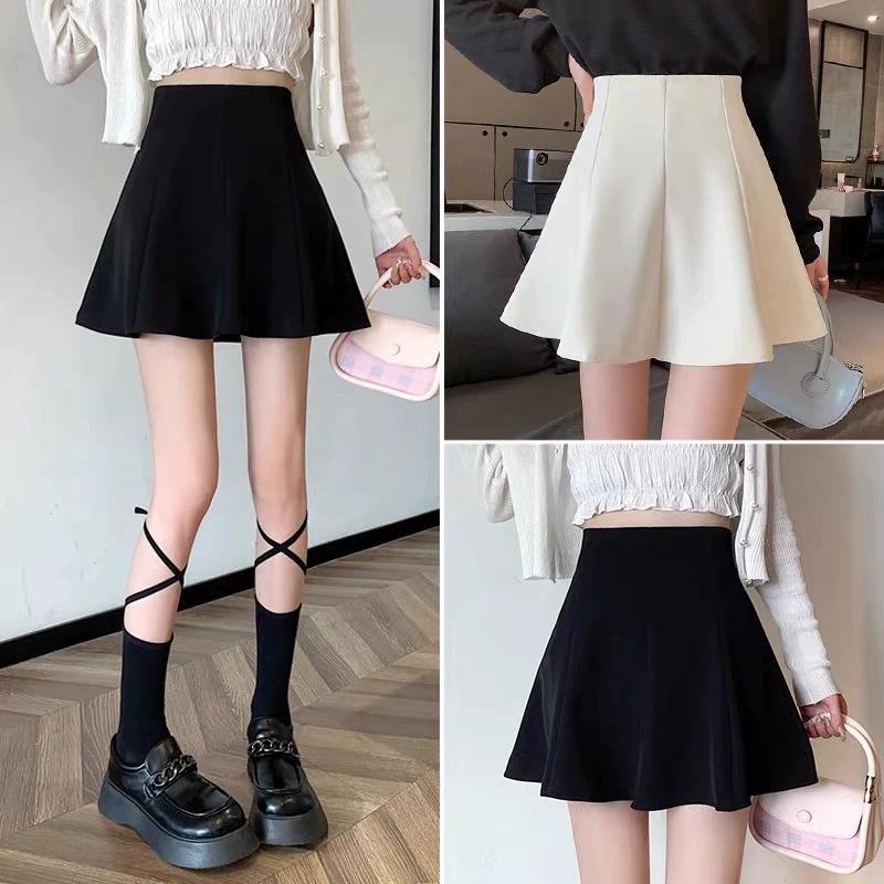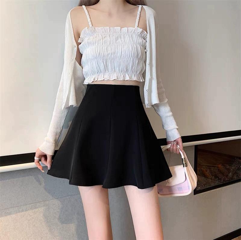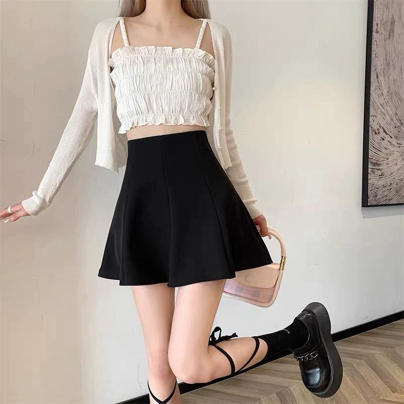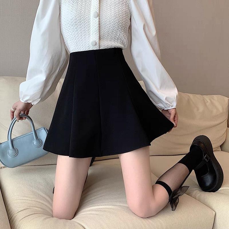 Saia Preta Bufante de Cintura Alta Feminina Nova 2025 Verão Saia Slim Saia Petite A-Line Saia Curta