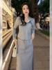 2025 Novo Conjunto Top Regata Sem Alças + Saia Midi Francês Cintura Alta Emagrecedor Casual Versátil Conjunto de Duas Peças Verão