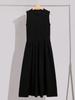 Vestido Regata de Algodão Puro Stretch Sem Mangas Francês Verão Feminino High-End Preto Saia Longa Saia Modeladora Textura