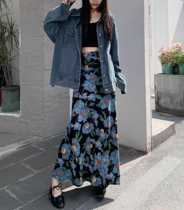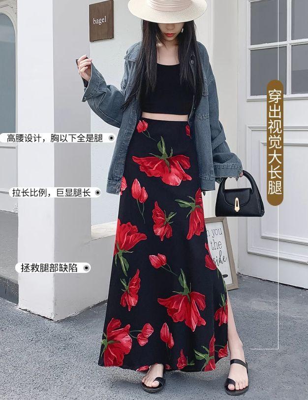 Comércio Exterior Transfronteiriço Fenda de Férias Saia Estampada Feminina Verão Nova Saia Slim de Cintura Alta Saia Evasê Saia Longa Fina