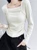 Camiseta de Manga Comprida Slim-fit Estilo Desejo Puro Gola Quadrada Estilo Francês Novo Moda Nicho Único Chic Top Ins