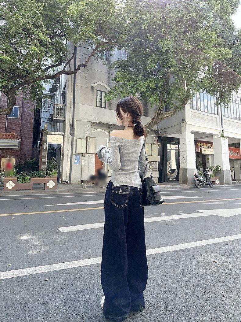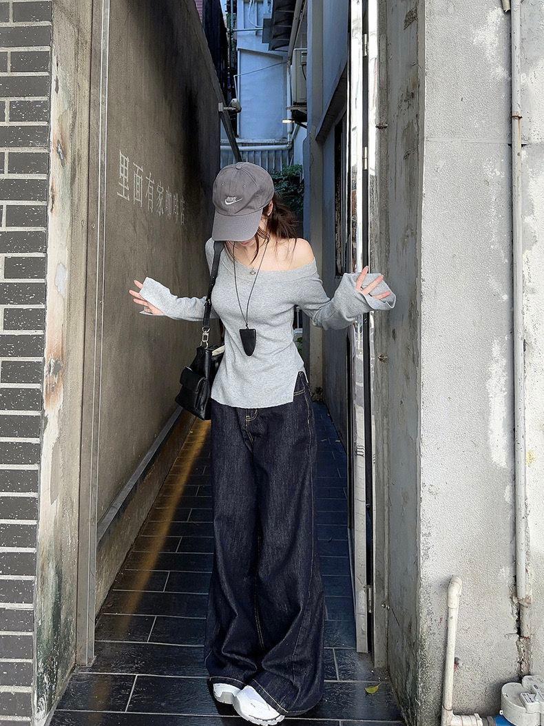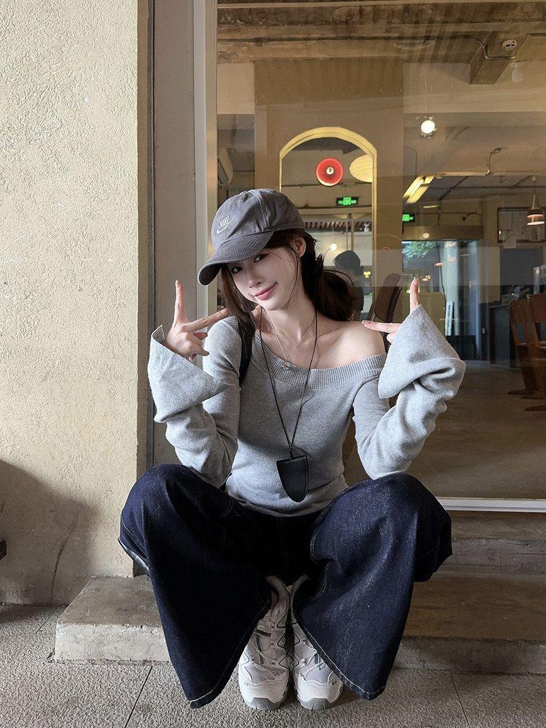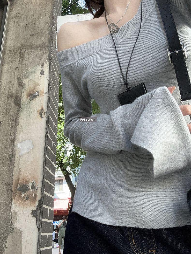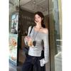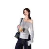 2024 Ombro Caído Ombro Inclinado Outono Novo Ajustado Emagrecimento Manga Longa Camiseta Sexy Desejo Puro Nicho Spice Girls Top Ins