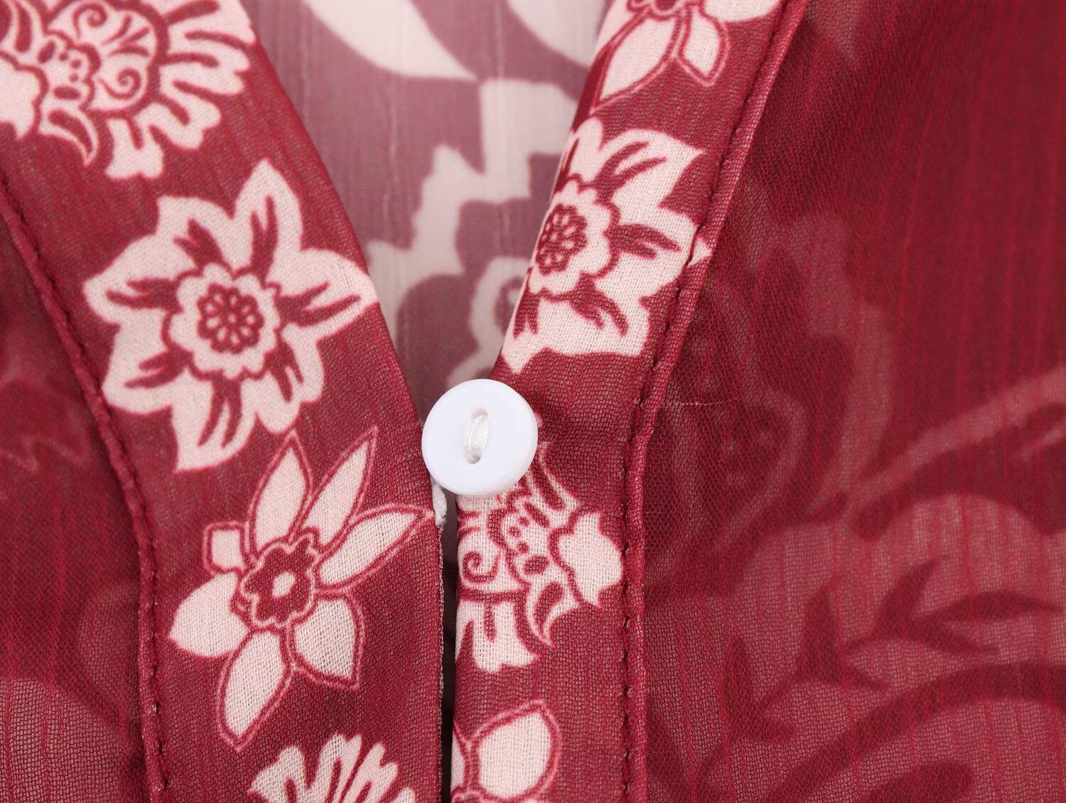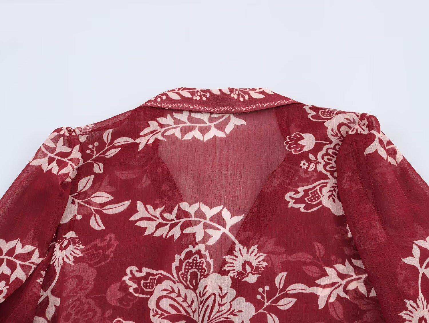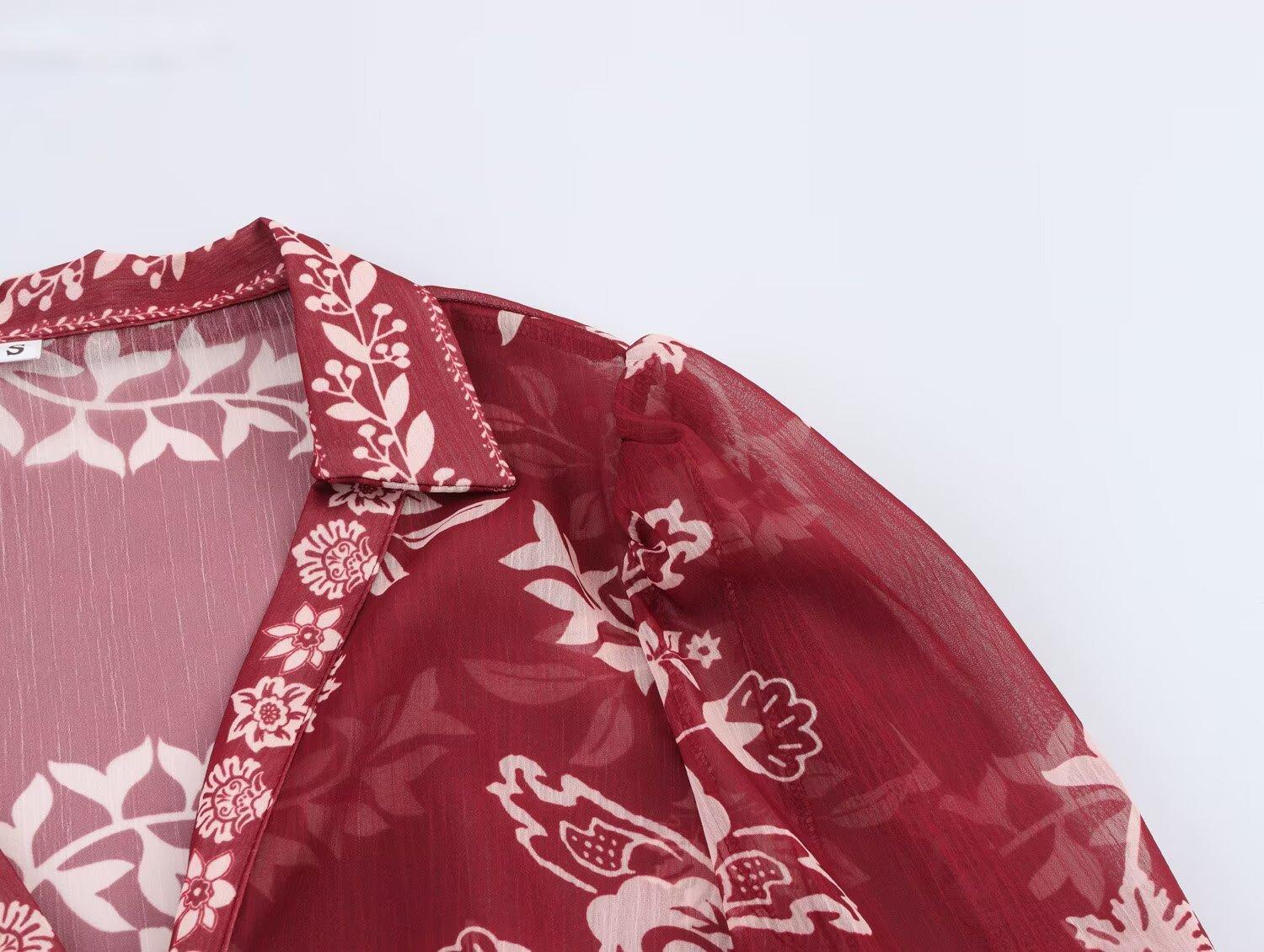 Primavera 2025 Nova Roupa Feminina Estilo Europeu e Americano Simples Casual Estilo Étnico Camisa Estampada Decote em V Manga Longa