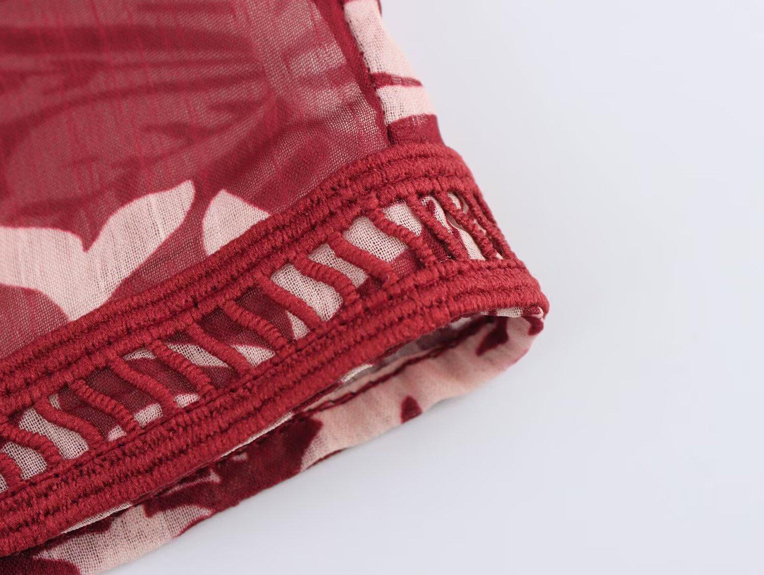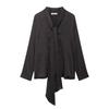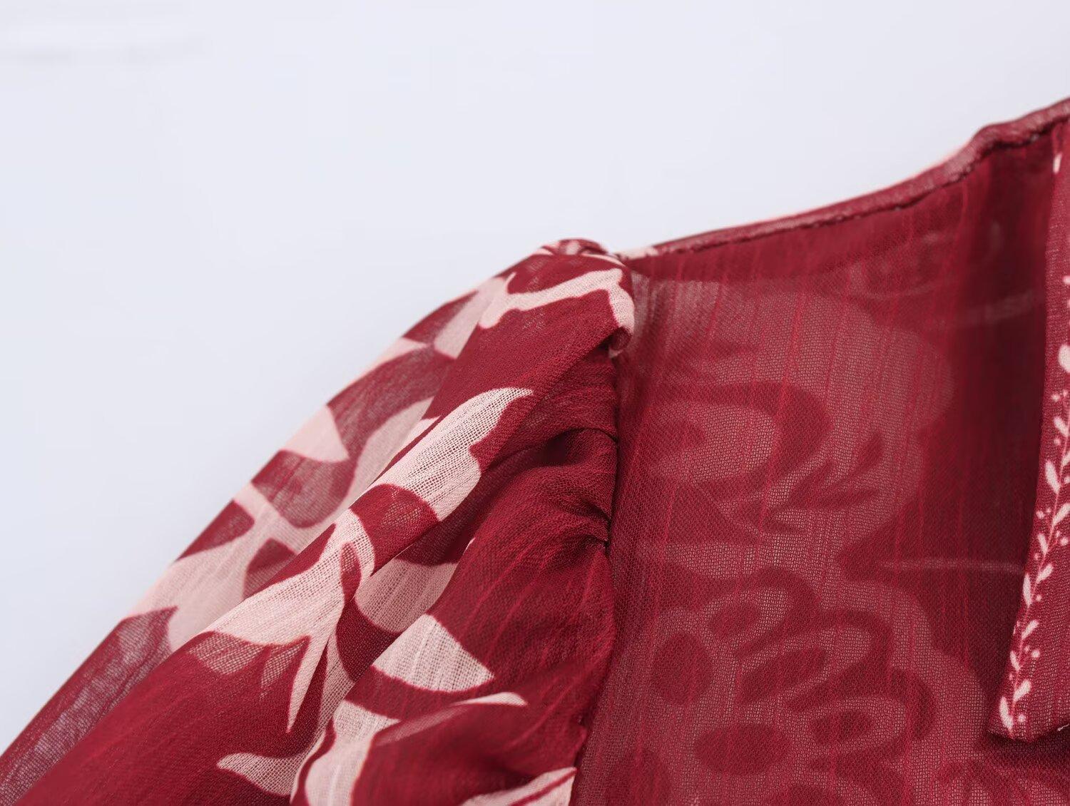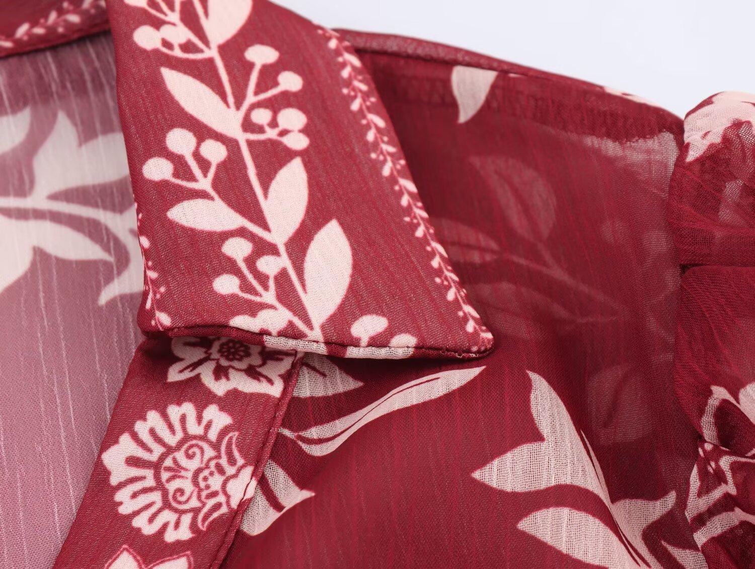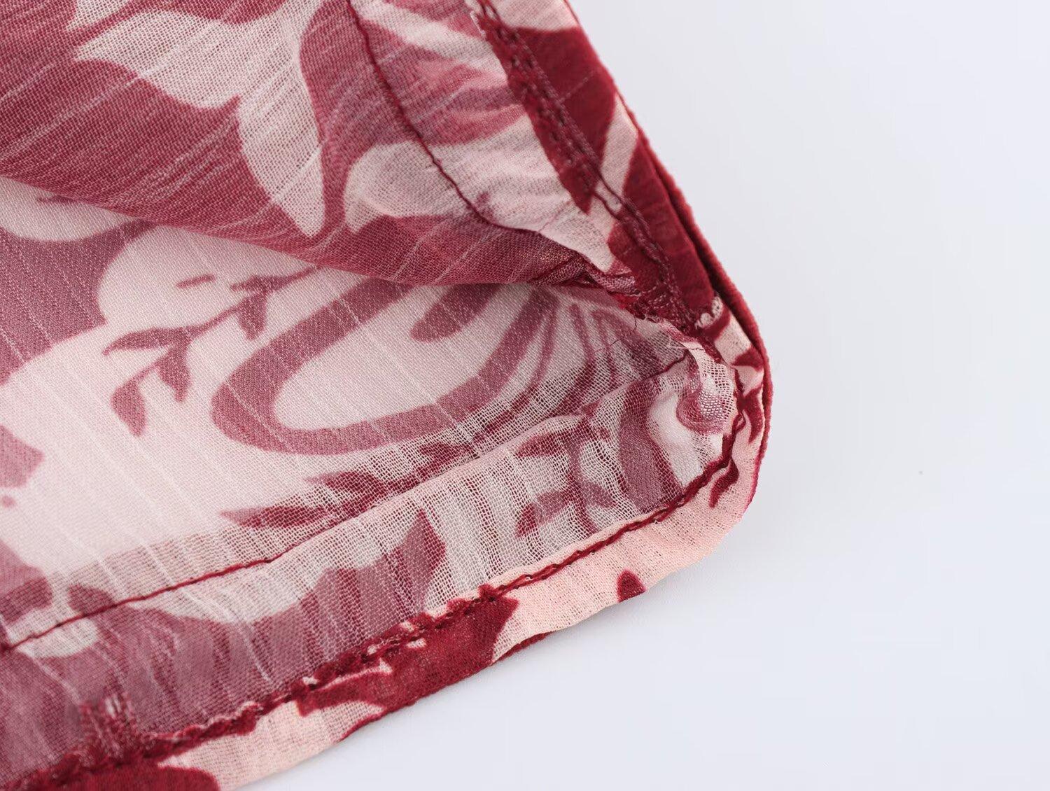 Primavera 2025 Nova Roupa Feminina Estilo Europeu e Americano Simples Casual Estilo Étnico Camisa Estampada Decote em V Manga Longa