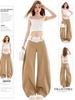 Jeans Cimitarra Cáqui com Renda para Mulheres Verão Novo Design Cintura Alta Solto Perna Larga Calças Foice