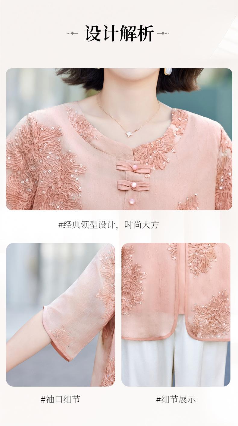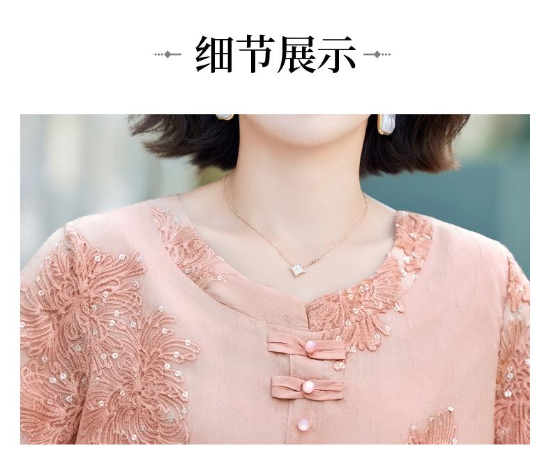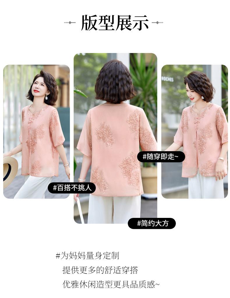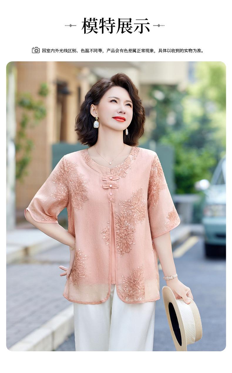 Mãe Verão 2025 Novo Estilo Larga Senhora Falso Duas Peças Manga Curta Camiseta Pequena Verão Mulheres de Meia Idade e Idosas Camiseta de Manga Curta de Verão