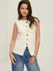 Colete Feminino Estilo Europeu e Americano Transfronteiriço Primavera Sem Mangas Ajustado Ponto Plano Botão Dourado Colete Top Suéter Feminino