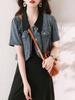 Verão 2025 Novo Estilo Elegante e Fashion Simples Versátil Slim-Fit Aparência Emagrecedora Lapela Jaqueta Jeans Curta Estilo Curto