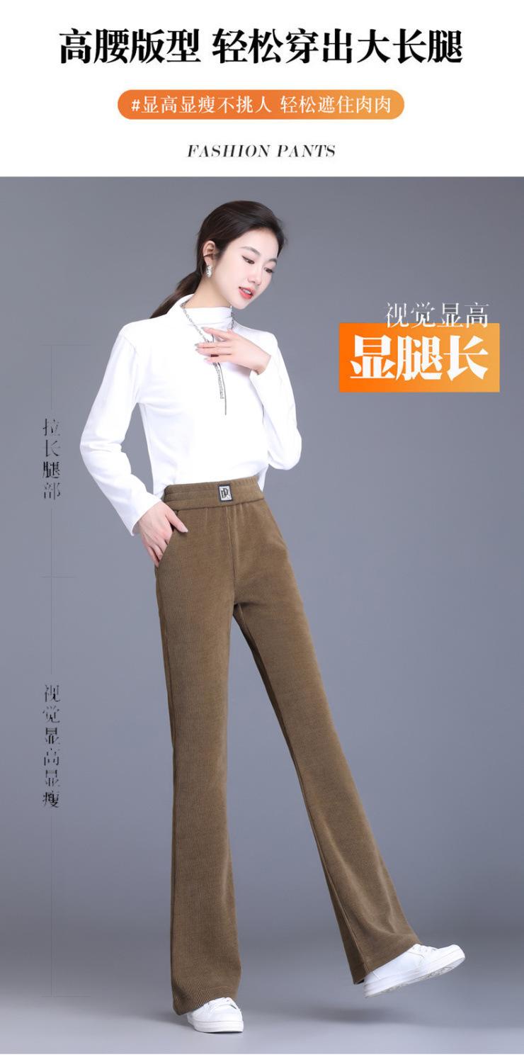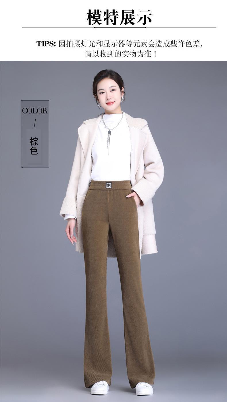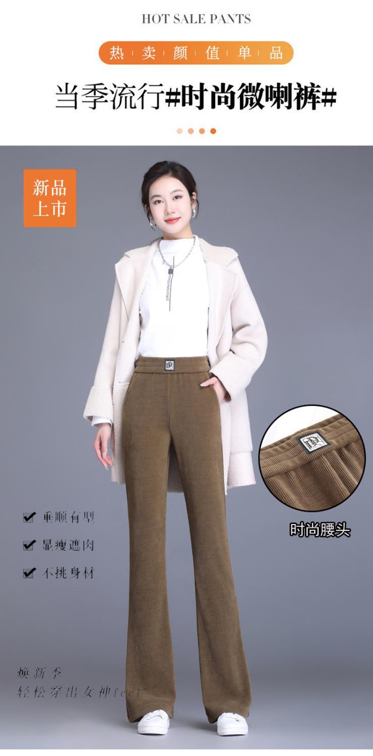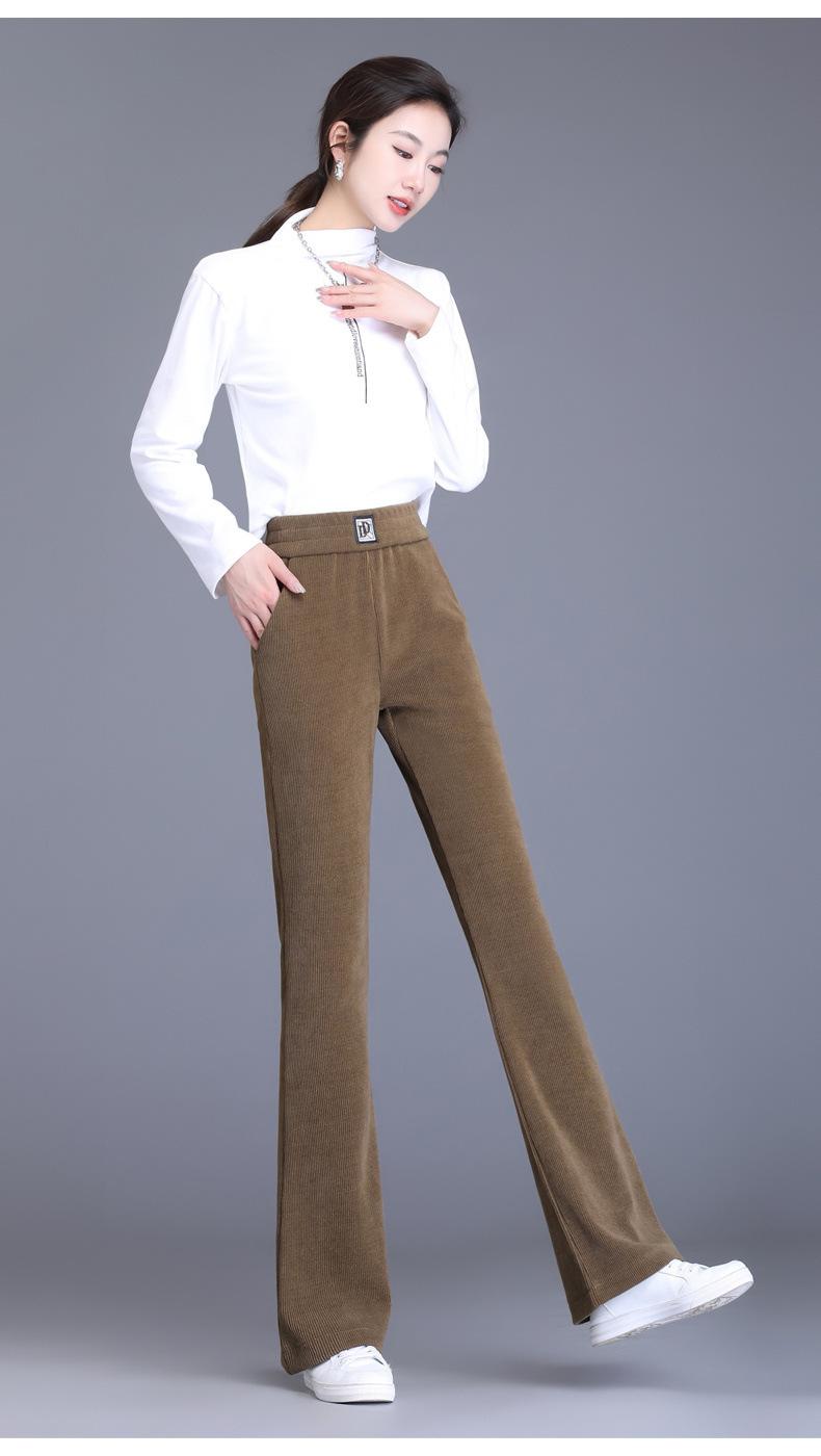 Calças Flare de Veludo de Algodão Estilo Europeu Petite para Mulheres, Novas Outono e Inverno Cintura Alta, Caimento Fluido, Ajuste Slim, Calças Casuais Sino, Calças Femininas Estilosas