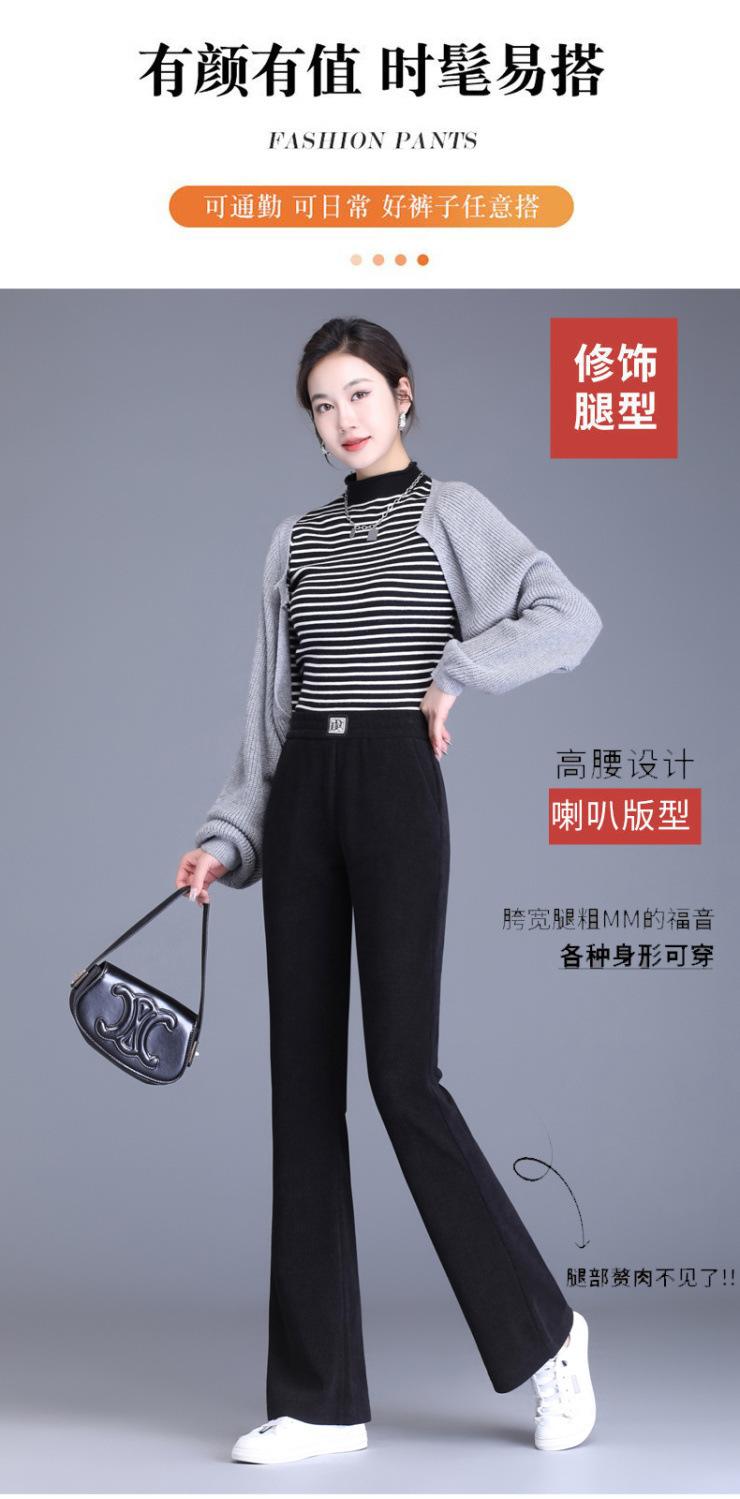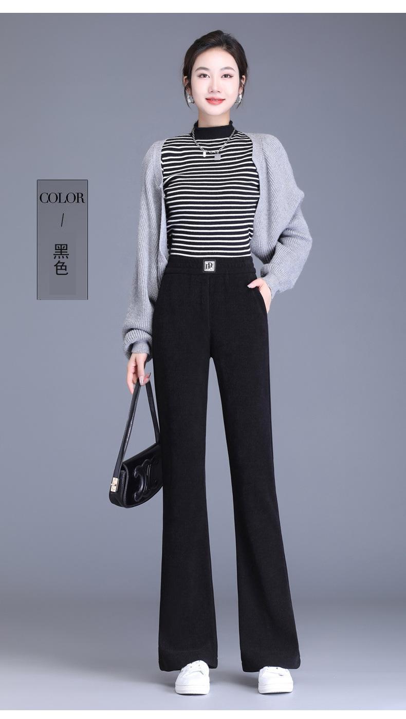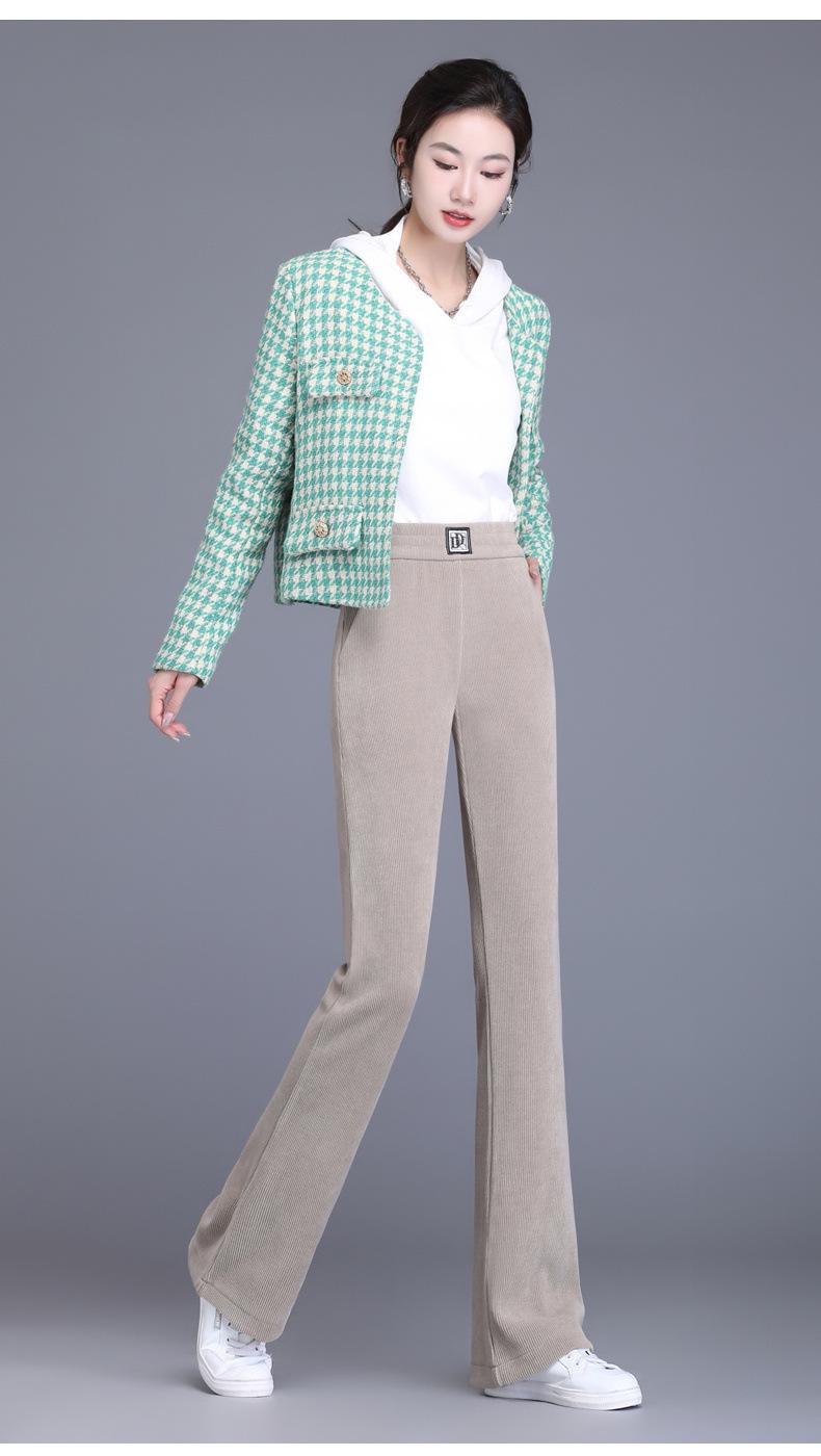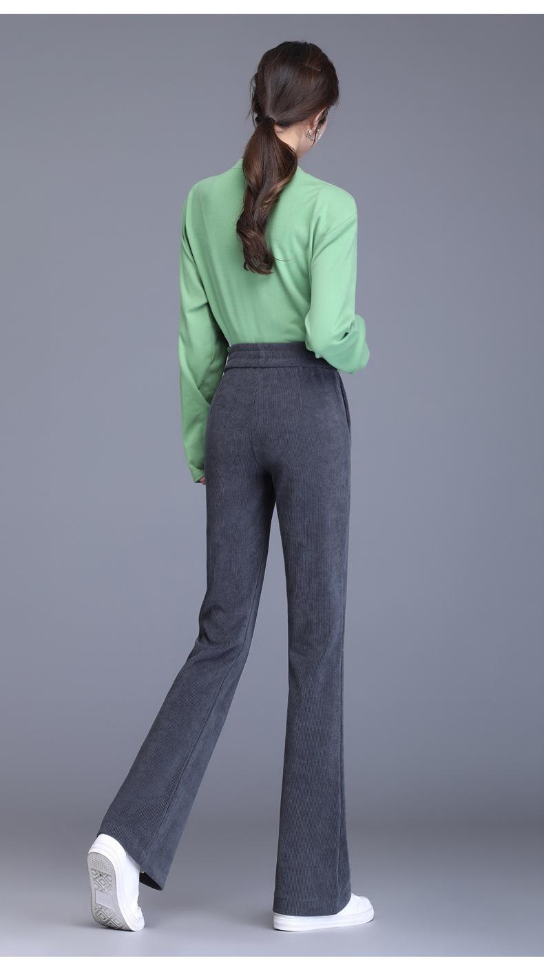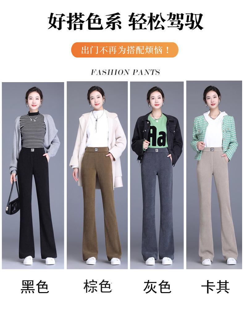 Calças Flare de Veludo de Algodão Estilo Europeu Petite para Mulheres, Novas Outono e Inverno Cintura Alta, Caimento Fluido, Ajuste Slim, Calças Casuais Sino, Calças Femininas Estilosas