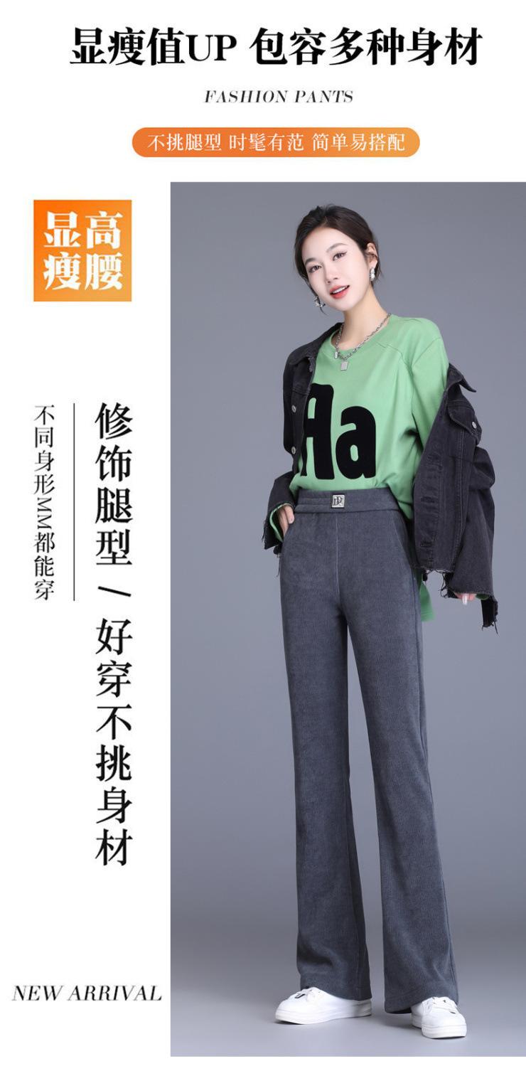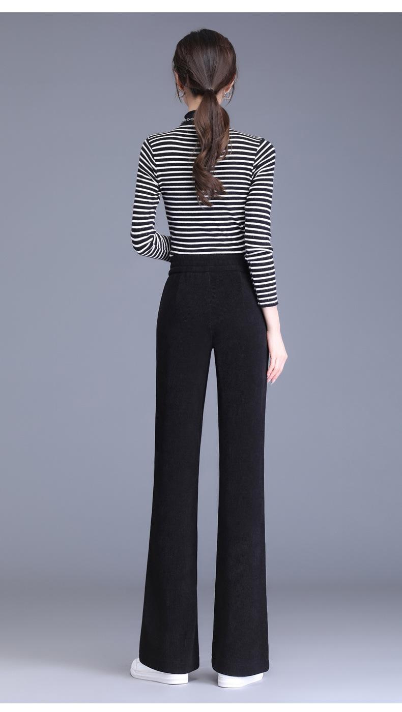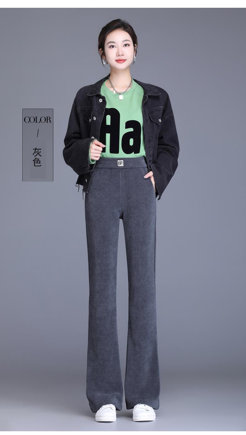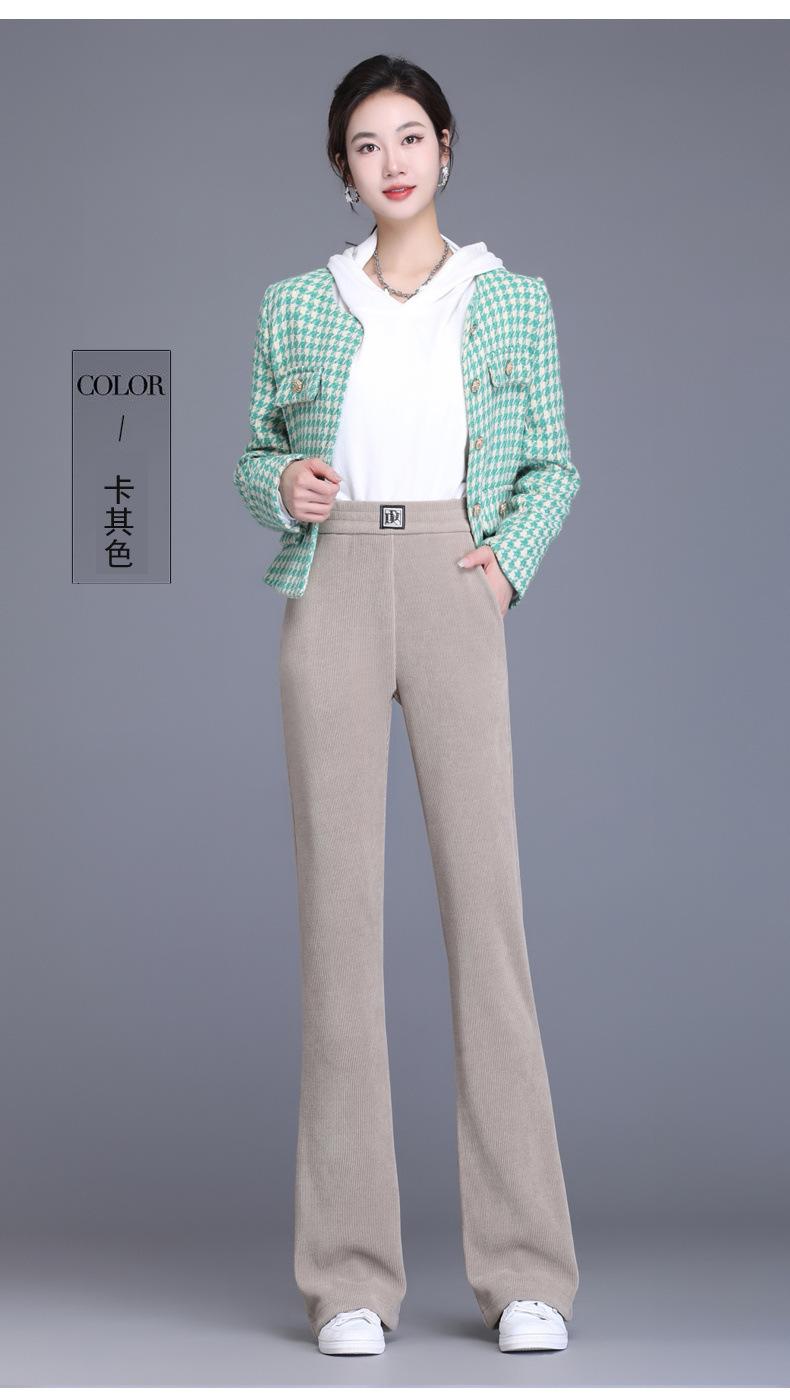 Calças Flare de Veludo de Algodão Estilo Europeu Petite para Mulheres, Novas Outono e Inverno Cintura Alta, Caimento Fluido, Ajuste Slim, Calças Casuais Sino, Calças Femininas Estilosas