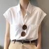 Camisa Versátil Azul Minimalista Coreana 2025 Verão Nova Moda Cor Sólida Moda Camisa Ombro Único para Mulheres