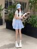 Saia Azul de Cintura Alta para Mulheres A-Line Anti-Exposição Primavera e Verão Estilo Preppy Simples Plissada Casual Bolo Saia Curta