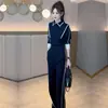 Conjunto de Moda Francesa Feminino Camisa Respirável de Comprimento Médio com Fenda Mulher 2025 Verão Novo Xadrez Calças Casuais de Perna Larga