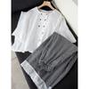 Terno de Moda Francesa Feminino Respirável Camisa Fenda Comprimento Médio Feminino Verão 2025 Novo Xadrez Calças Casuais de Perna Larga