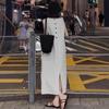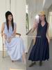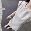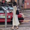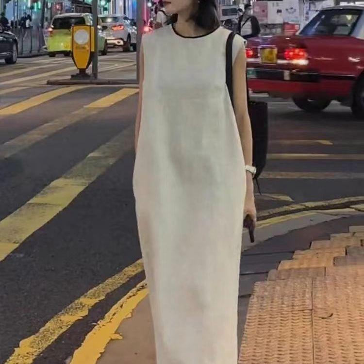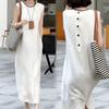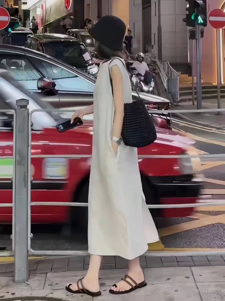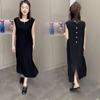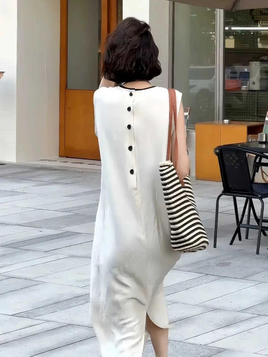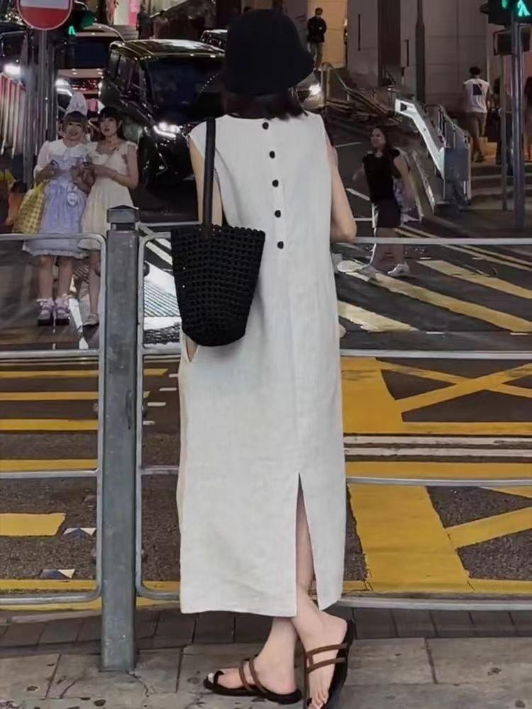 Vestido colete francês de alta qualidade sem mangas feminino 2025 verão temperamento botão nas costas fenda cor sólida solto emagrecimento