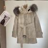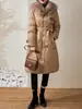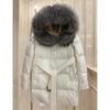 Gola de Pele de Raposa Casaco Longo de Penas para Mulheres 2025 Inverno Espessado Doce Cintura Marcada Penas de Pato Branco Resistente ao Frio Emagrecimento