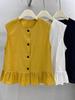 Verão 2025 Novo Estilo Europeu Simples Camiseta Regata com Bainha Babados para Mulheres, Blusa Juvenil e Estilosa