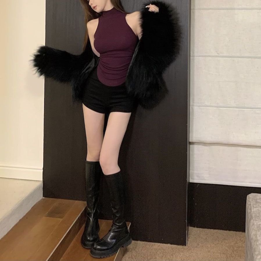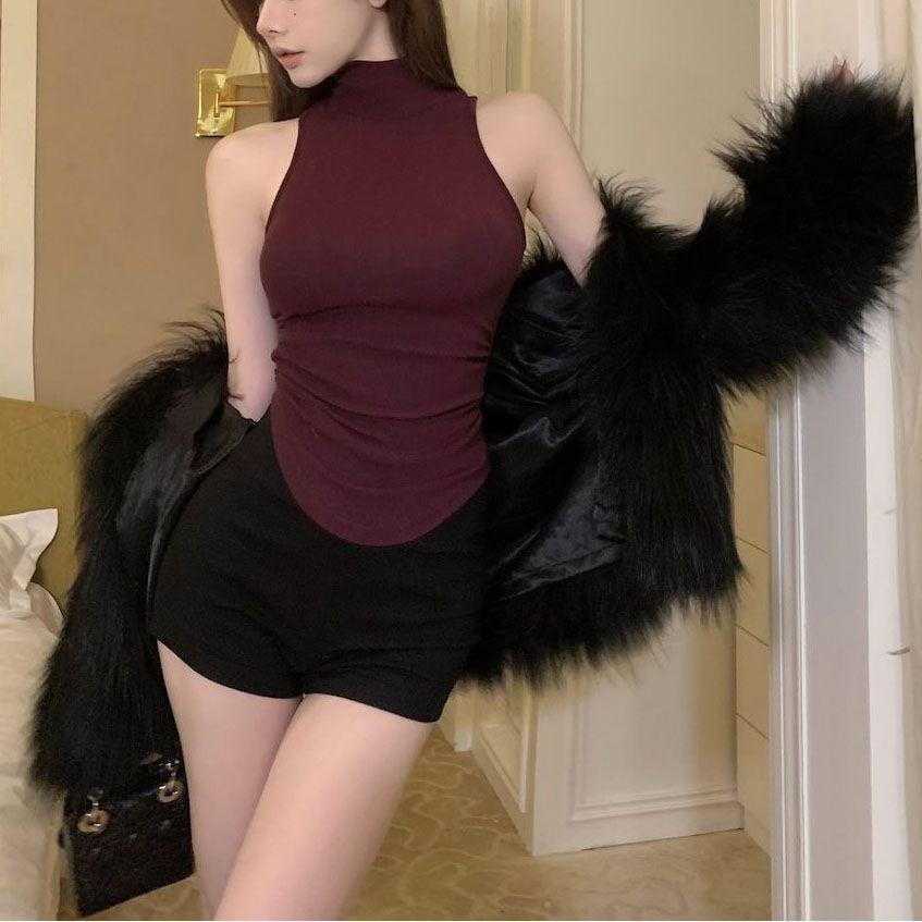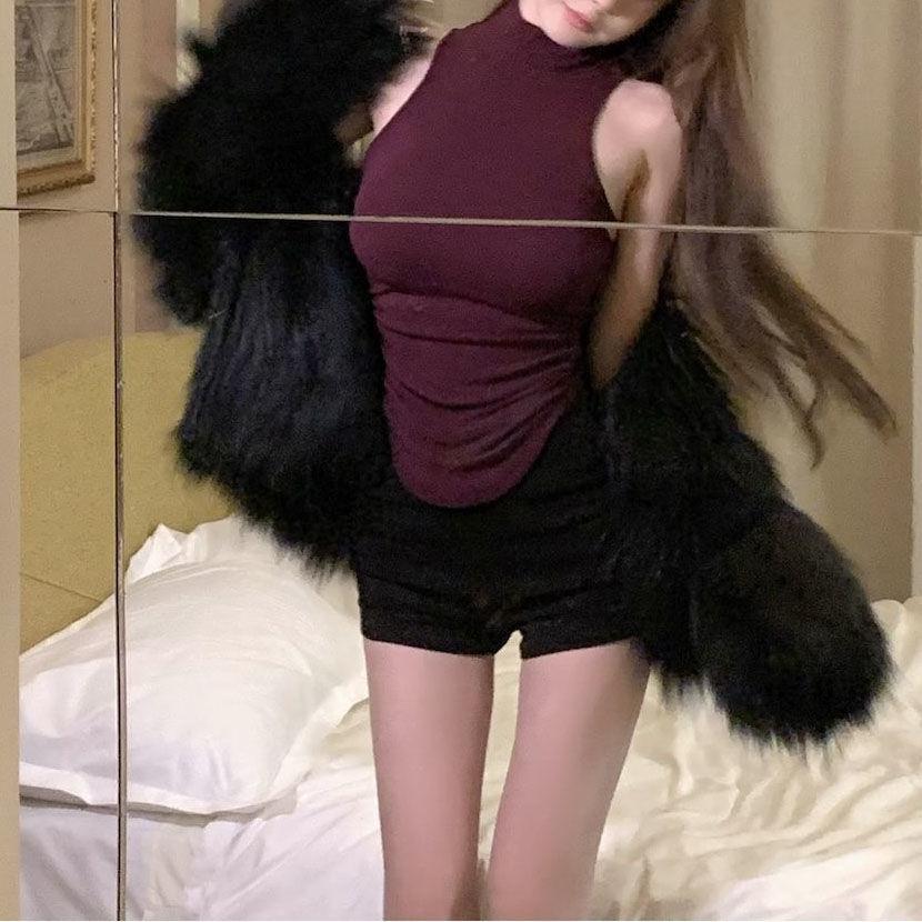 [Atacado Transfronteiriço] Regata Slim Gola Alta Metade para Mulheres Verão Roxo Justa Sem Mangas Top para Uso Externo