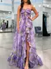 Vestido de noite longo e elegante, estampado em chiffon, estilo europeu e americano, para primavera e verão, 2025