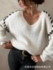 Europeu e Americano Transfronteiriço 2025 Novas Roupas Femininas Amazon Design Solto de Gola Redonda Cor Contrastante Tricotado Pulôver de Manga Comprida