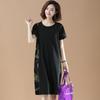 Verão 2024 Mãe Gorda Solta Emagrecimento Plus Size Vestido Floral Manga Curta Drapeado em Malha Roupas Femininas