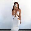 Desejo Puro Garota Quente Sexy Sem Costas Lace-Up Gola Halter Gola Balanço Sem Mangas Vestido Saia Cauda de Peixe Cintura Ajustada Quadril Saia Longa