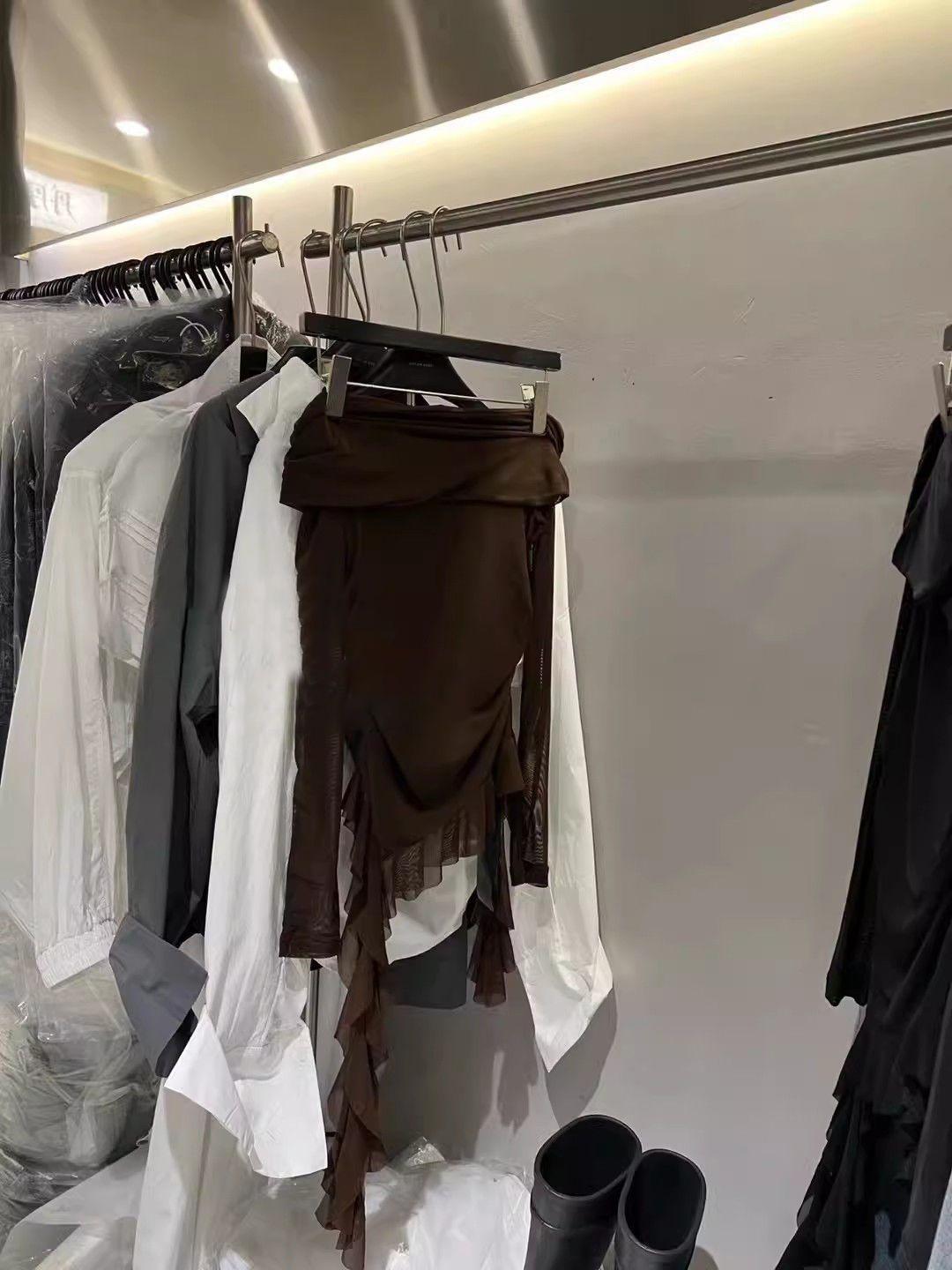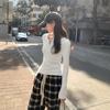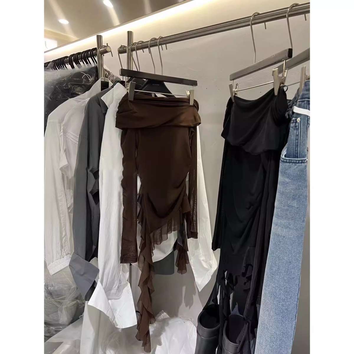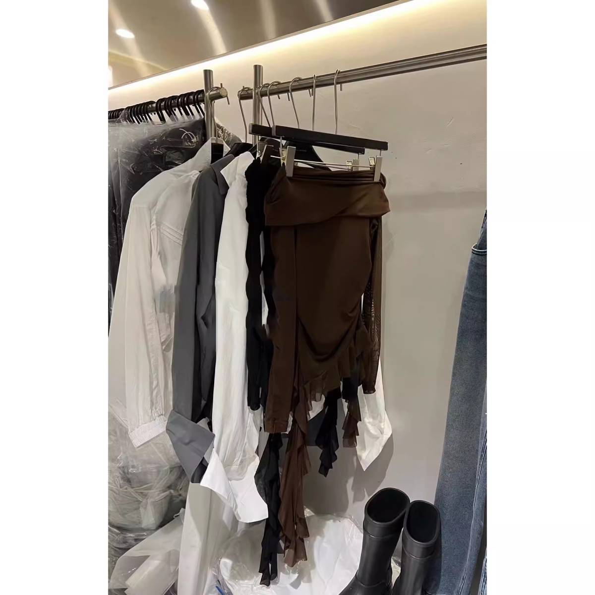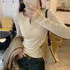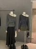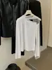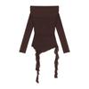 [Atacado Transfronteiriço] Camiseta Elegante Coreana Dongdaemun com Design de Fita Ombro a Ombro, Malha de Um Ombro, Manga Longa para Mulheres