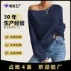 Estilo Europeu e Americano Transfronteiriço Design Popular de Um Ombro Suéter Ombro a Ombro Solto Moderno e Confortável Pulôver Suéter de Outono e Inverno para Mulheres
